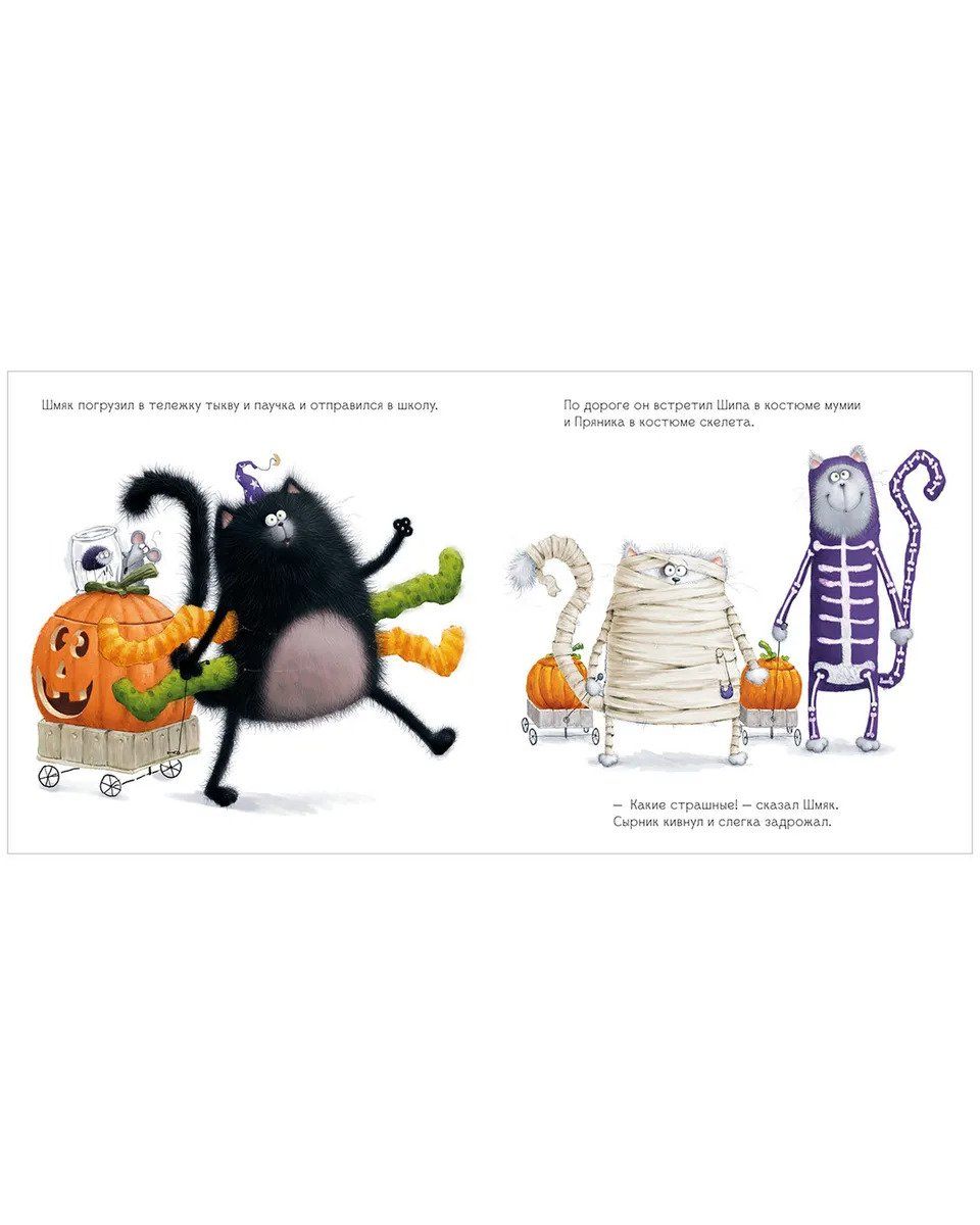 Another novelty about the favorite kitten, who together with his friends is preparing to celebrate Halloween. The program includes scary stories by the light of pumpkin lanterns and a prize for the most frightening image. Shmyak really wants to win the contest, but does not know how. After all, he himself is afraid of even a small spider, his broom is broken, and his masquerade costume causes only laughter. Suddenly, during the telling of horror stories, a real commotion started, and when Mrs. Puhliss turned on the lights.