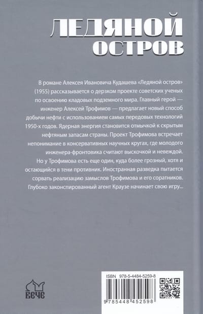 Alexey Ivanovich Kudashev's novel Ice Island (1955) tells the story of a daring project by Soviet scientists to develop the underground world's storehouses. The protagonist, engineer Alexey Trofimov, proposes a new method of oil production using the most advanced technologies of the 1950s. Nuclear energy becomes the master key to the country's hidden oil reserves. Trofimov's project is met with misunderstanding in conservative scientific circles, where the young front-line engineer is considered an upstart and ignoramus. But Trofimov has another, far more formidable, although still in the shadows, opponent. Foreign intelligence is trying to disrupt the plans of Trofimov and his associates. The deeply undercover agent Krause begins his game...