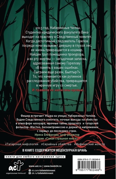 2013, Naberezhnye Chelny. Law student Vika begins an internship at the Investigative Committee. When the despotic investigator Gorelov summons her to a remote forest in the middle of the night, her life turns into a nightmare. The body of an assistant prosecutor is found, and in the victim's mouth is a cryptic note addressed to Gorelov himself: "In memory of your mistakes. Shall we play one more time, Byltyr?"