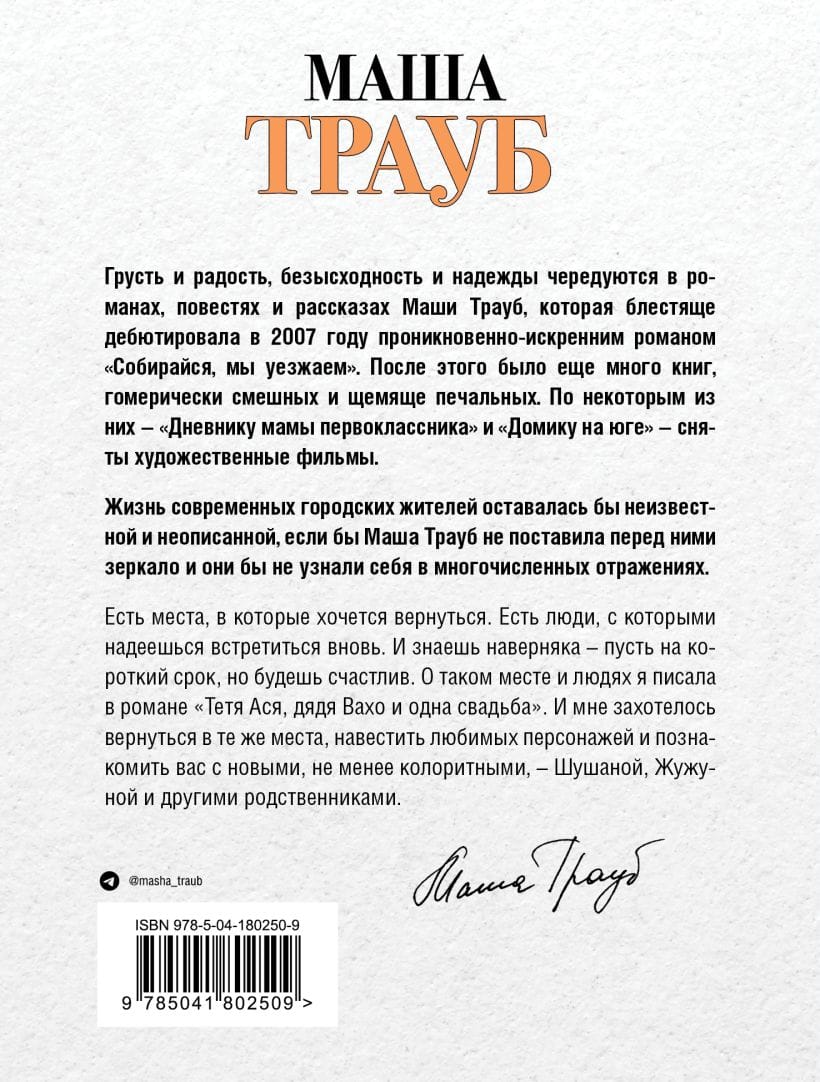 A bustling, vibrant city. People who consider you a close friend within minutes of meeting you. No one can describe such a life quite like Masha Traub, whose books are like the beloved comedies of Georgy Danelia—they make you cry and laugh, fill you with delight and empathy. This is exactly what we look for in a book: the opportunity to experience a full range of emotions.