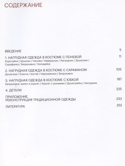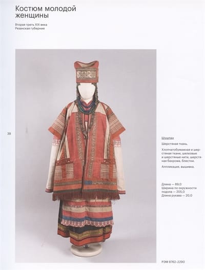 The album familiarizes the reader with original types of breast garments that were part of the Russian folk costume. The research and illustrative base of the publication is the collection of Russian clothing of the Russian Ethnographic Museum (St. Petersburg). The collections of the REM include items of the 18th - 20th centuries, which were mostly worn by peasants in the Russian North, North-West, Central Russia, southern and south-western regions, the Volga region, the Urals, and Siberia. The structure of the album is based on the regional principle of living in different complexes of Russian traditional costume: South Russian with poneva, Central North Russian with sarafan, single-dress with striped skirt. Each section presents types of breast garments characterized by different cut and decoration. The album demonstrates to the maximum extent possible the variety of materials used for sewing and finishing of breast garments: homespun materials made of wool and linen, cloth, various silk and cotton fabrics, as well as ribbons, braid, lace, cords, bunting, glass (buttons), metal (sequins), metallized thread (and also fringe made of it), etc. The majority of items are published for the first time. Most of the items are published for the first time. The appendix contains schemes of cutting, weaving and embroidery of authentic museum samples.