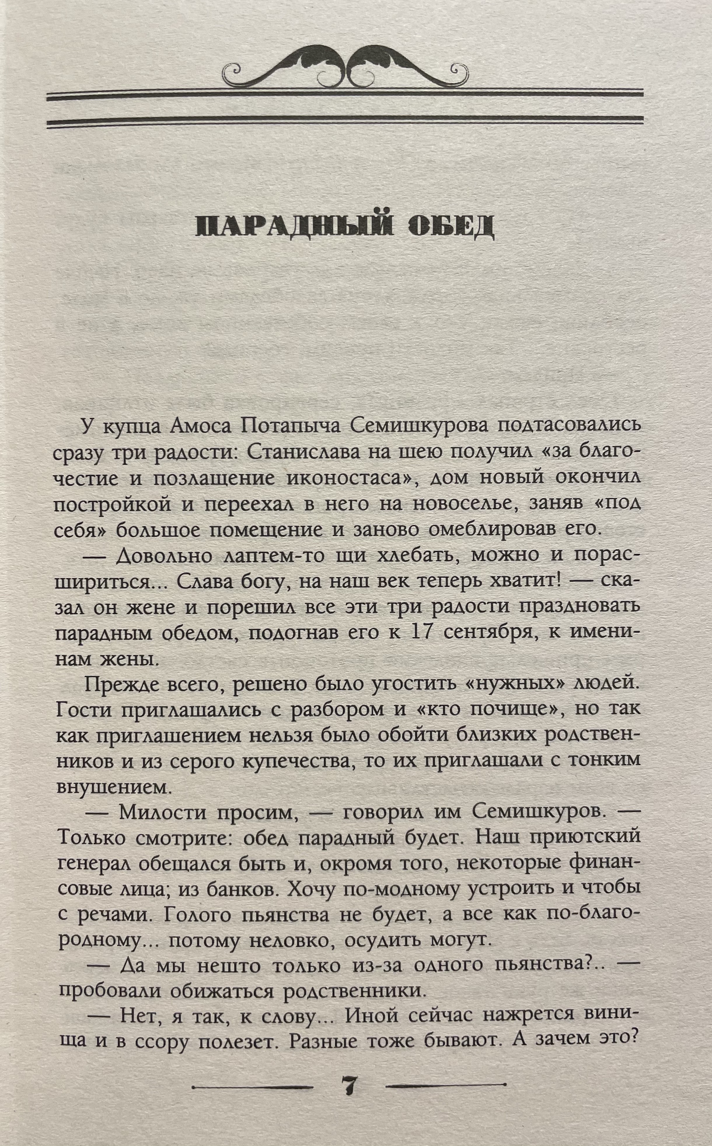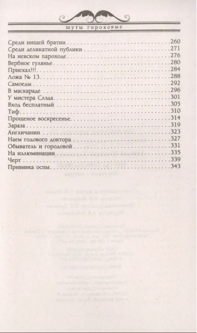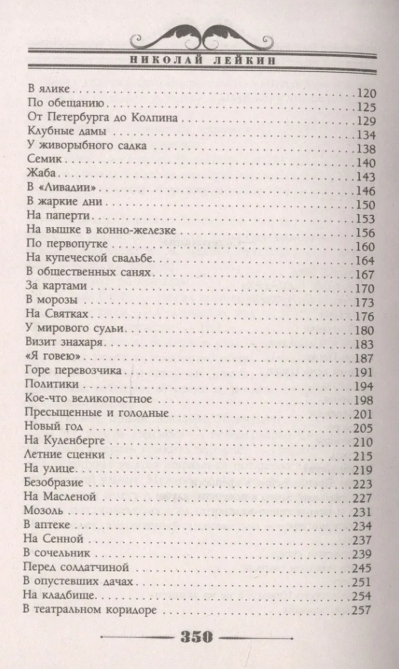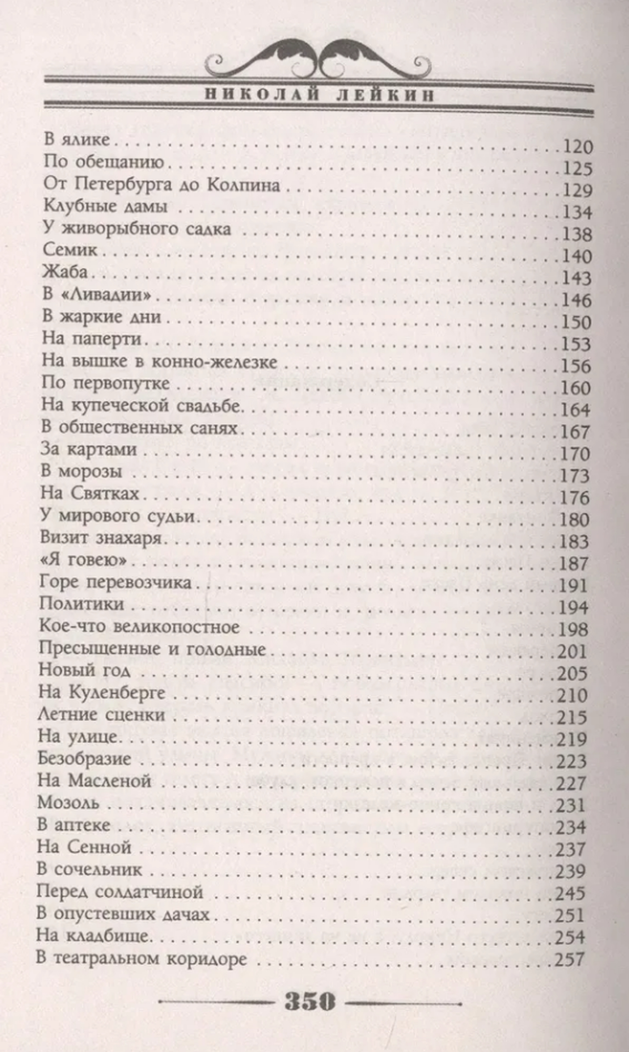 This collection of stories presents the reader with a parade of places, events, characters, and situations characteristic of the late 19th century, depicted in the ironic vein characteristic of the renowned classic satirist N.A. Leykin. There's a humorous side to everything, and all people are, one might say, buffoons from a certain perspective, especially the characters in the humorous author's observational sketches. However, the stories are far from one-sided; they don't only showcase the cheerful and comically unflattering sides of human nature, but also depict sad, lyrical scenes. Both in the past and today, life is surprisingly multifaceted, and N.A. Leykin's work fully reveals this diversity.