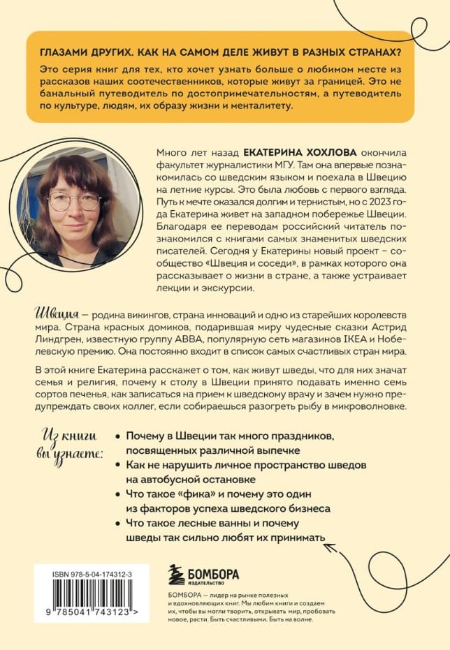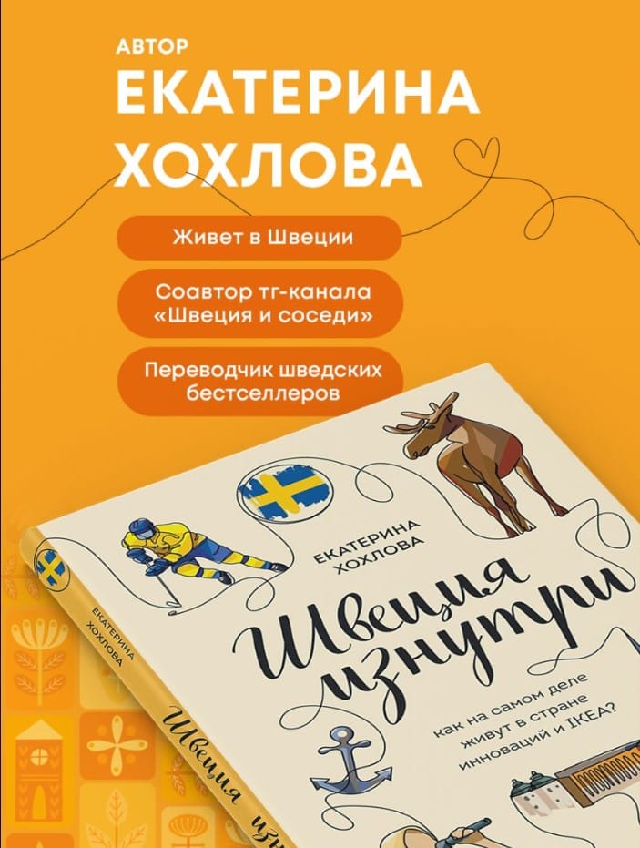 Ekaterina Khokhlova has been working with the Swedish language for many years. She has been to Sweden many times and has been living in the kingdom for over a year. During this time, Ekaterina was able to find out what the Swedes are really like. In the book, she will tell you about the life of the Swedes, introduce their mentality and customs. The author will explain why it is customary to serve exactly seven types of cookies at the table in Sweden, how to make an appointment with a Swedish doctor and why you need to warn your Swedish colleagues if you are going to heat up fish in the microwave.