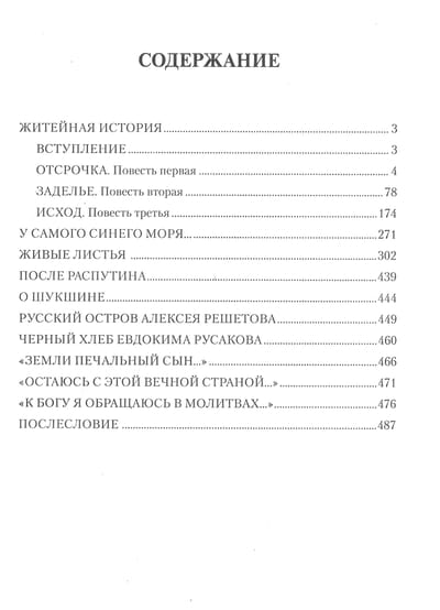 The novel by the Russian Siberian writer and laureate of the V.G. Rasputin literary prize Andrei Antipin is dedicated to the older generation. The book is based on the fate of the Kolymeyev spouses, their relationships with each other and with their neighbors, their secret, sometimes sad, sometimes bright thoughts about life and funeral feasts. The three parts of the novel - "Delay", "Zadelye", "Exodus" - are quite independent, but, brought together in a plot thread, they track and capture the most important milestones in human destiny - from the painful happiness of being in this world to the inspired joy of imminent departure. The publication also includes the story "By the Very Blue Sea ...", a collection of miniatures and an essay on modern literature.