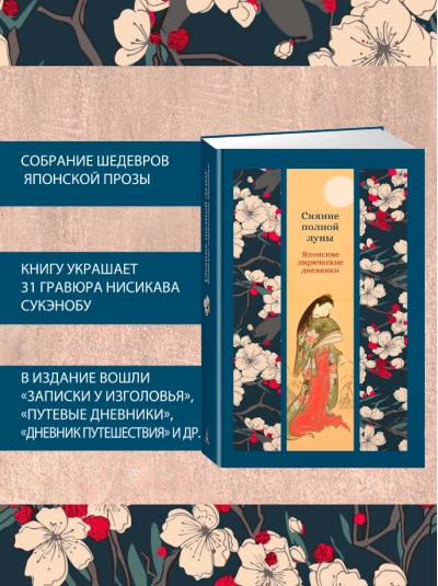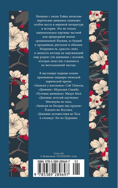 This edition includes recognized masterpieces of Japanese lyrical prose: "Pillow Book" by Sei Shonagon, "Diary" by Murasaki Shikibu, "Travel Diaries" by Matsuo Basho, fragments of "Diary of a Flying Web" by Michitsuna no Haha, "Notes from the Pavilion by the Pond" by Yoshishige no Yasutane, "Diary of a Journey from Tosa to the Capital" by Ki no Tsurayuki.