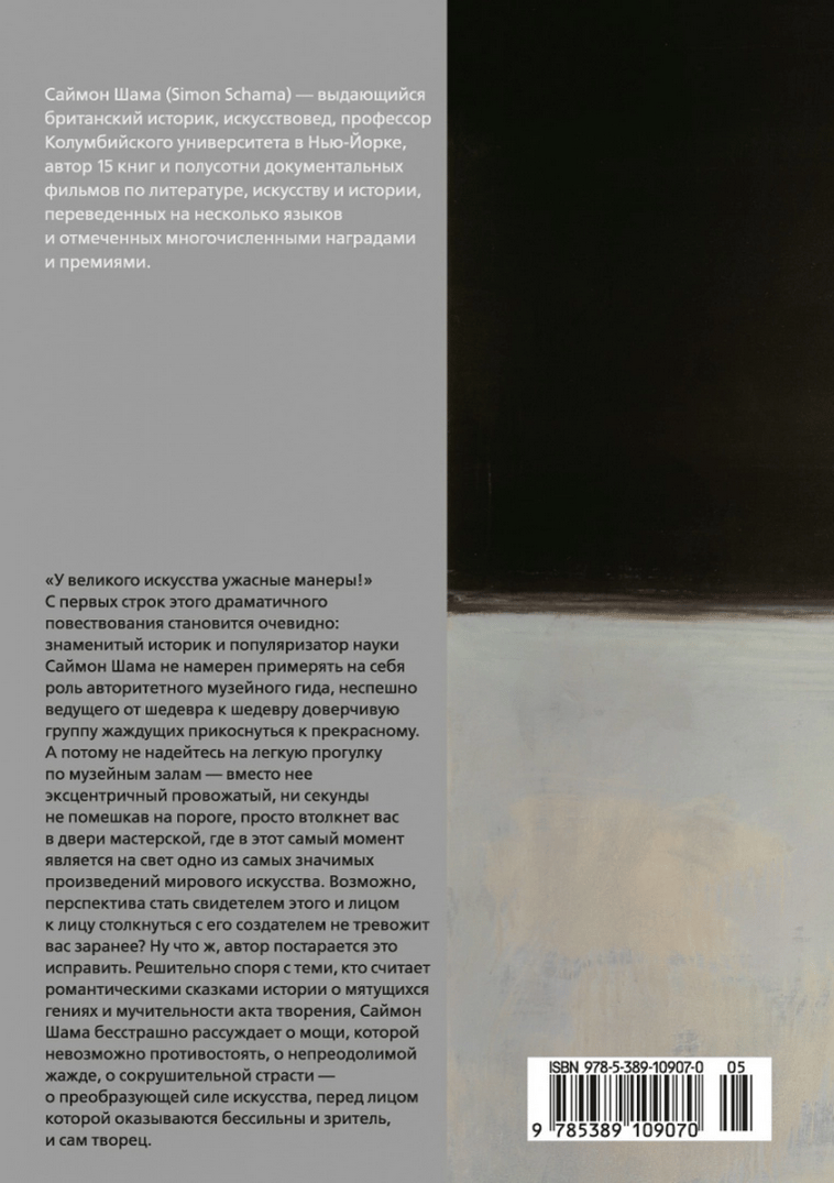 "Great art has terrible manners!" From the first lines of this dramatic narrative it becomes obvious: the famous historian and popularizer of science Simon Schama does not intend to try on the role of an authoritative museum guide, slowly leading a trusting group of people eager to touch the beautiful from masterpiece to masterpiece. So do not count on an easy walk through the museum halls - instead, the eccentric guide, without a second's hesitation on the threshold, will simply push you into the doors of the studio, where at this very moment one of the most significant works of art is being born. Perhaps the prospect of becoming a witness to this and coming face to face with its creator does not worry you in advance? Well, the author will try to fix that. Taking a stand against those who dismiss stories of tormented genius and the torment of creation as romantic fairy tales, Simon Schama fearlessly explores the irresistible power, the irresistible urge, the crushing passion – the transformative power of art that leaves both viewer and creator powerless.