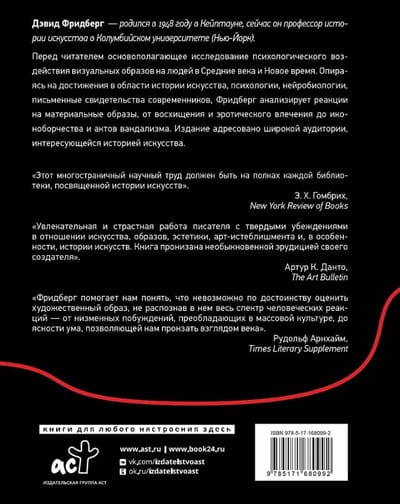 This seminal study examines the psychological impact of visual images on people in the Middle Ages and early modern periods. Drawing on advances in art history, psychology, neuroscience, and contemporary written accounts, Freedberg analyzes reactions to material images, from admiration and erotic attraction to iconoclasm and vandalism. This publication is intended for a general audience interested in art history.