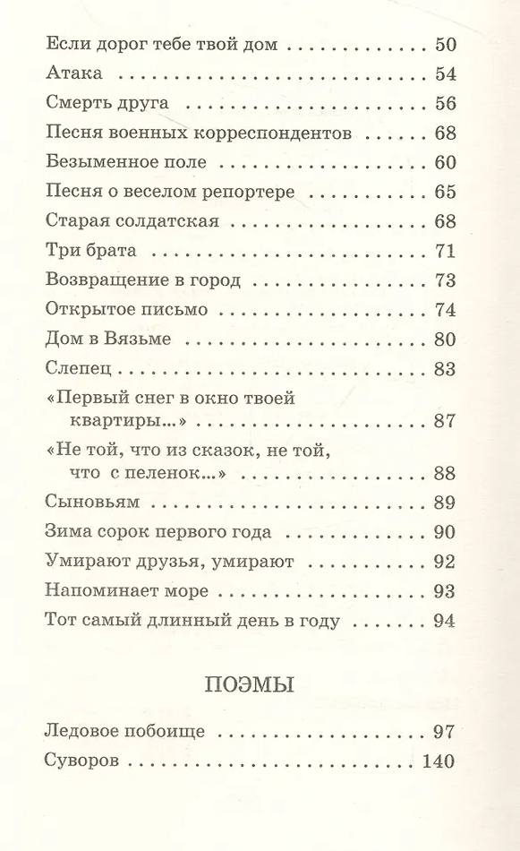 The collection also includes the poems "The Battle on the Ice," "Suvorov," and the poet's war poetry.