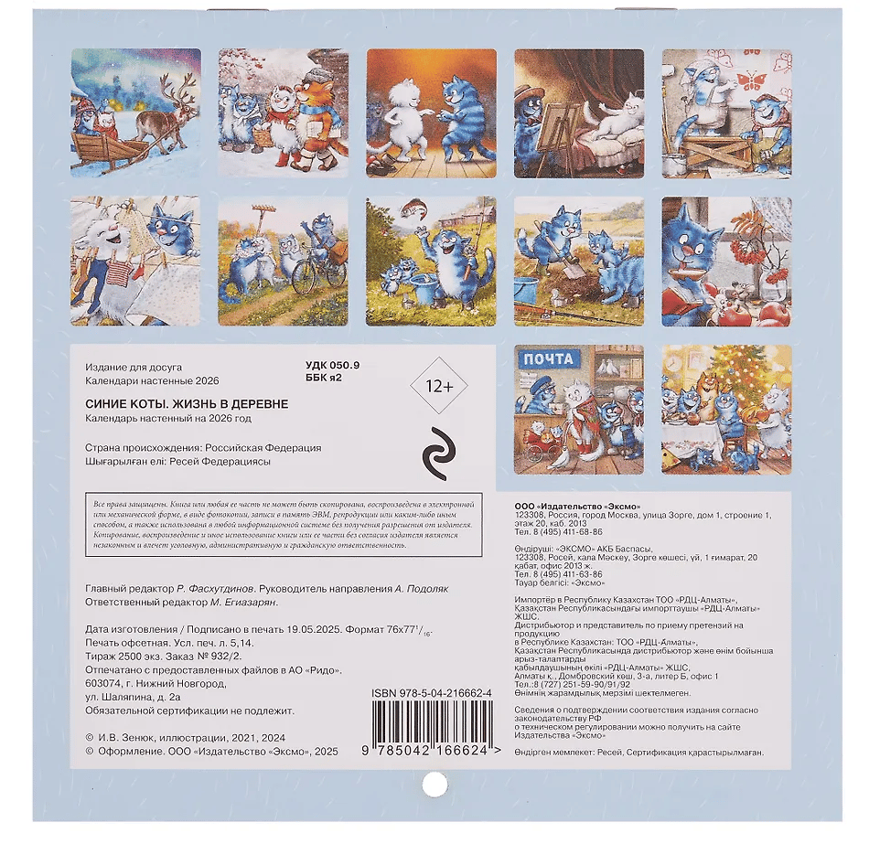 A funny cute calendar with sketches from the life of a large family of famous Blue Cats, who have won the love of thousands of fans in various Internet communities.