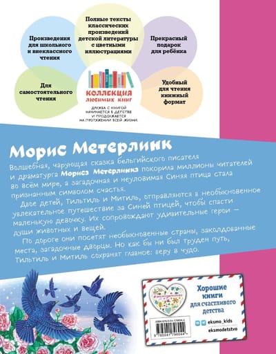 The magical fairy tale by the Belgian writer Maurice Maeterlinck "The Blue Bird" has everything that children love: a beautiful fairy, wonderful transformations, an exciting journey, secrets, mysteries, fantastic places and, of course, a happy ending. And at the same time, young readers will receive amazing lessons in kindness, courage, honesty, and devotion. "Be brave to see the hidden" is one of the main ideas of the beautiful story.
