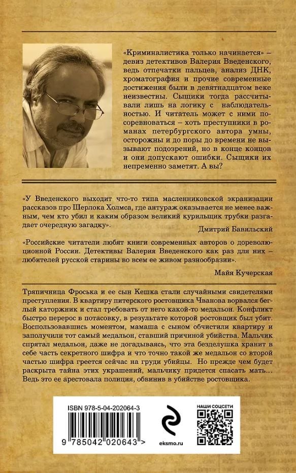 The boy hid the medallion, not even realizing that this trinket contained part of a secret code and that exactly the same medallion with the second part of the code was now warming itself on the chest of the killer. But before the secret of these decorations is revealed, the boy will have to save his mother... After all, it was she who was arrested by the police, accused of murdering the moneylender.