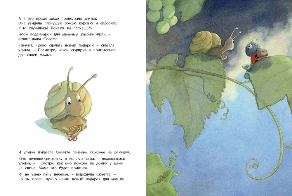 All the pupils of the insect school prepared a surprise for their mothers. Suzette, the little ladybug, worked very hard and made a wonderful pot of flowers. But there was an unfortunate accident: on the way home the present broke! Suzette turned to the forest dwellers for help and, thanks to the kind advice of a snail, a caterpillar, a spider, a bee and an ant, she managed to make the perfect present herself.