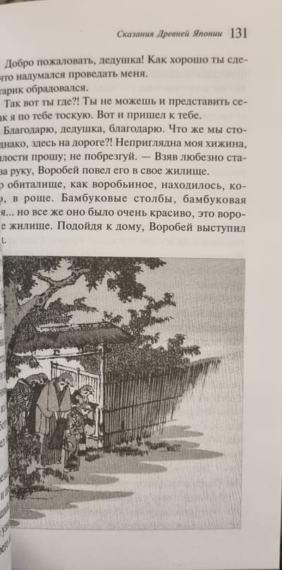Sadzanami captured Japan itself in his recorded tales - its history, mythology, life and beliefs. There is a legendary and historical tale about the hero Momotaro, who was born from a large peach and at a young age defeated a whole horde of evil devils. There is a religious and ethical tale about the cunning and cruel Tanuki, whom the Hare avenged for the death of his old neighbor. There is also a mythical tale about a descendant of heavenly gods who descended to the bottom of the sea to the kingdom of the Dragon in search of a lost fishing hook.