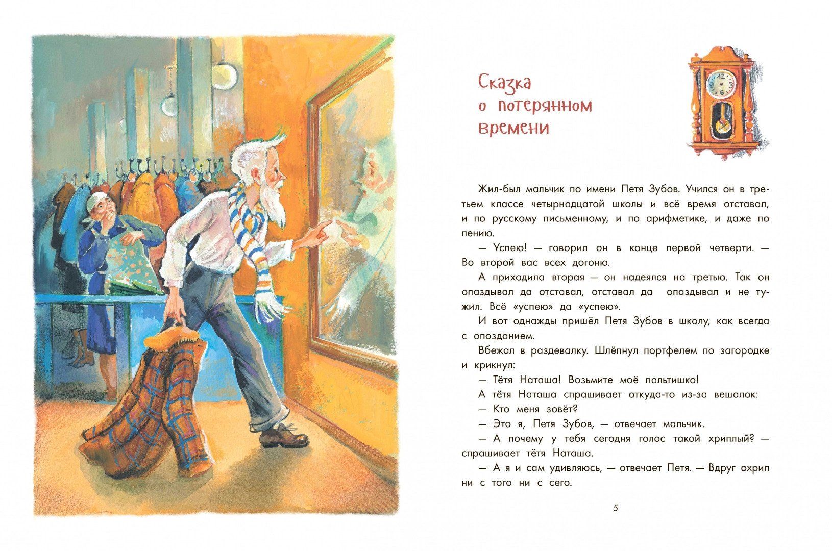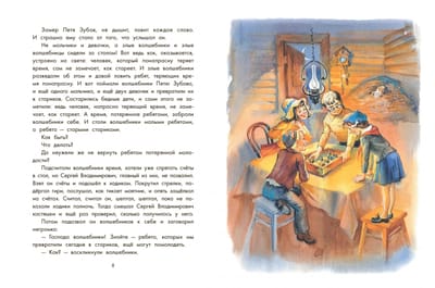 Petya Zubov, a third-grade student, was always behind, even in singing. He was also always late, not realizing that it was dangerous to play with time. Only when evil wizards turned him into an old man, he learned how everything works in the world. It turns out that a person who wastes time in vain does not notice how he grows old. Petya, like the heroes of other Shvarts fairy tales, will have to fight evil forces, and to do this he will have to find the courage to face the truth, to see his shortcomings, to overcome laziness and fear, to perform real feats, forgetting about himself and thinking only about those who need help.
