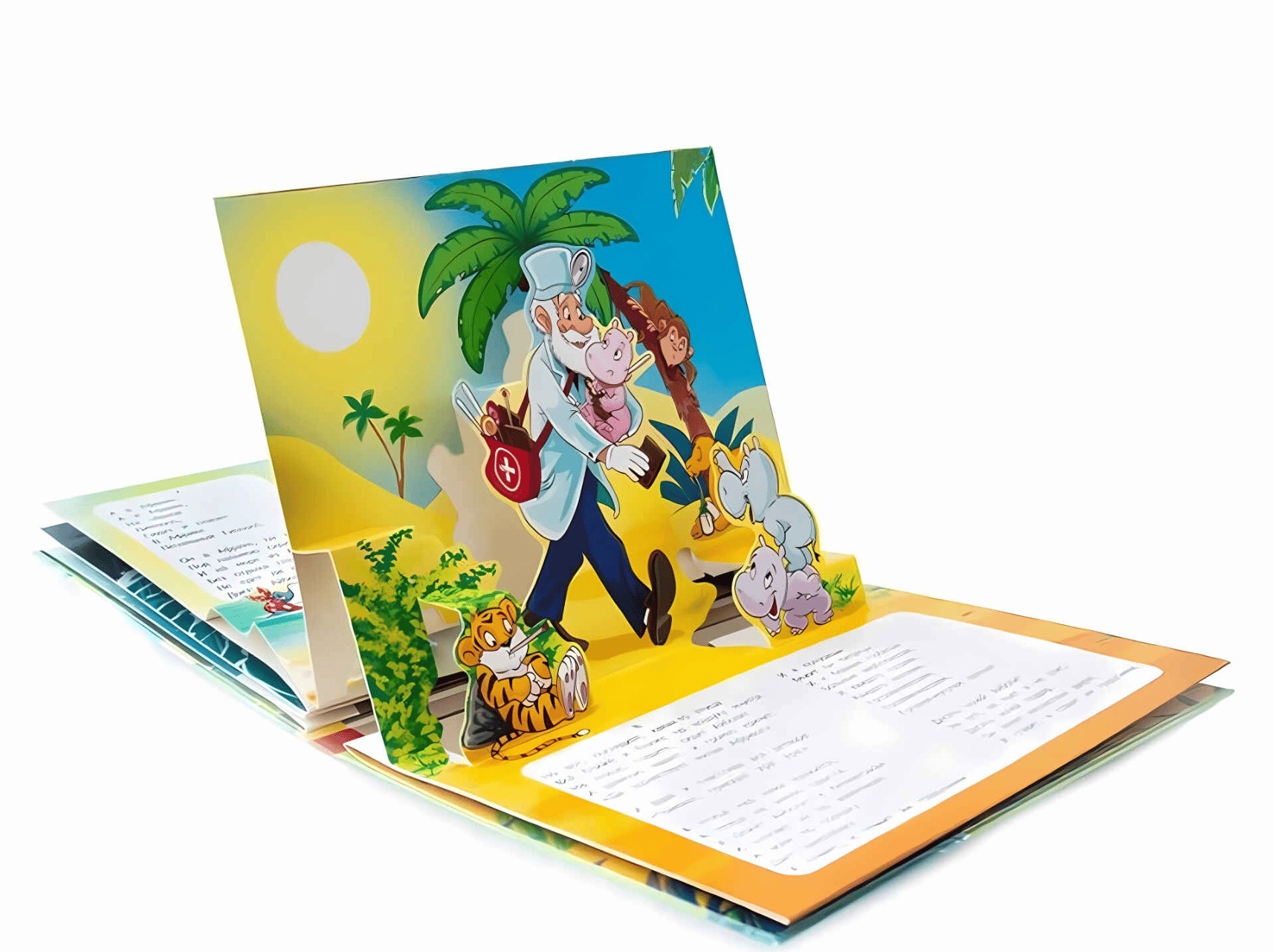 The panoramic book "Aibolit" will take the child's imagination to the fairy tale by Korney Chukovsky about the kind doctor Aibolit, who loves animals very much and cares for them. Looking at the book, the child will not only meet the bright, colorful characters of the work. He will see that the animals, as well as everything that surrounds them, look three-dimensional and very realistic.