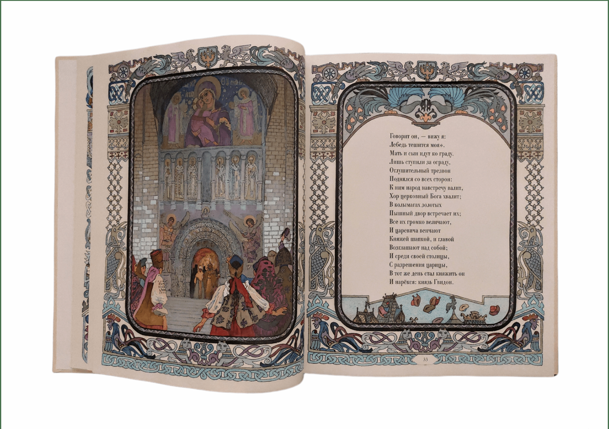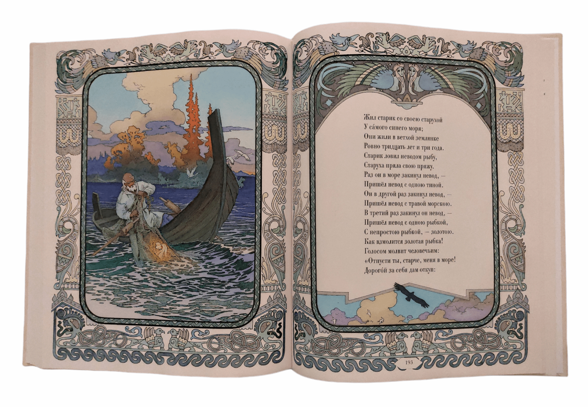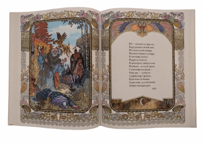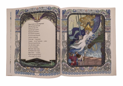 "How delightful these tales are! Each one is a poem!" wrote Alexander Pushkin. The poet was captivated by the people's creative imagination, fantasy, artistic figurative thinking, and the elemental force of language. Pushkin didn't simply set Russian tales to verse; like a folk storyteller, he altered the plots, incorporating elements of other genres, such as songs, laments, incantations, and even details of foreign-language folklore. In his "Tales," Pushkin experimented with form, but always strove for one goal: to convey the beauty of the Russian language, and through it, the Russian soul. This goal is further exemplified by Vyacheslav Nazaruk's illustrations in the fairytale "Russian style." Drawing not only on folklore but also on the traditions of Russian illustration, the artist created multilayered drawings, intricate in color and ornamentation.
