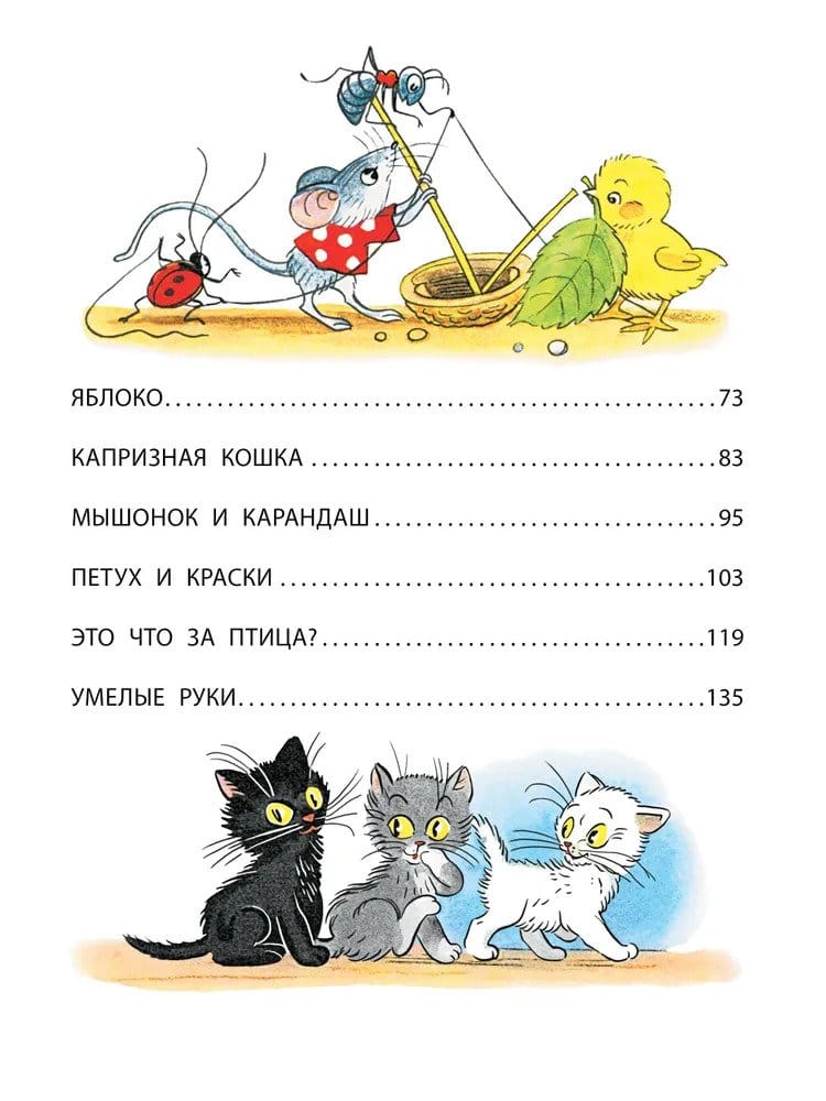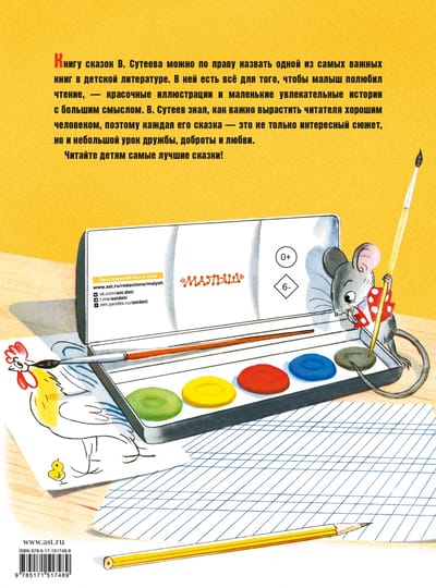 Vladimir Grigorievich Suteev is the most important storybook artist of children's literature. He invented a new genre of children's books - picture books. V. Suteev turned the book into a cartoon with a fascinating dynamic plot. And it is not surprising, because he is not only a writer and artist, but also one of the founders of domestic animation. On most of his fairy tales were made cartoons. Our book includes the most famous fairy tales and pictures by Suteyev: "Chicken and Duckling", "Three Kittens", "Under the Mushroom" and others.