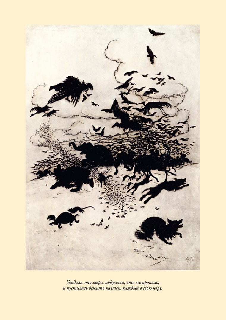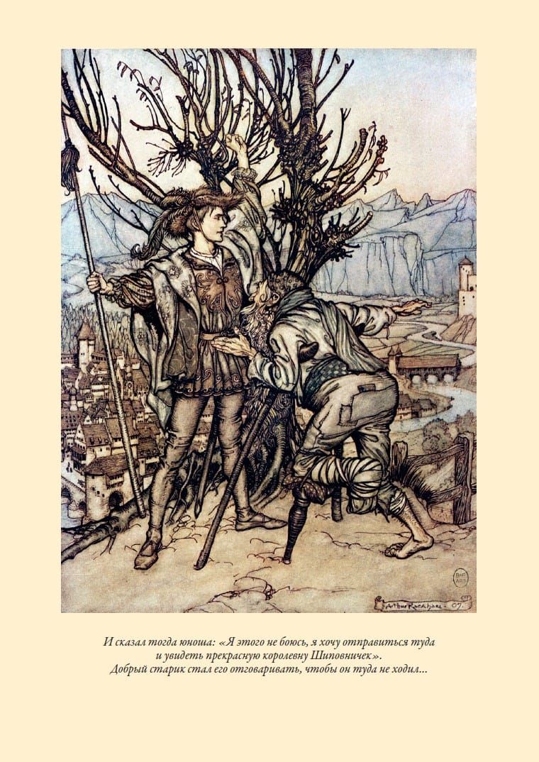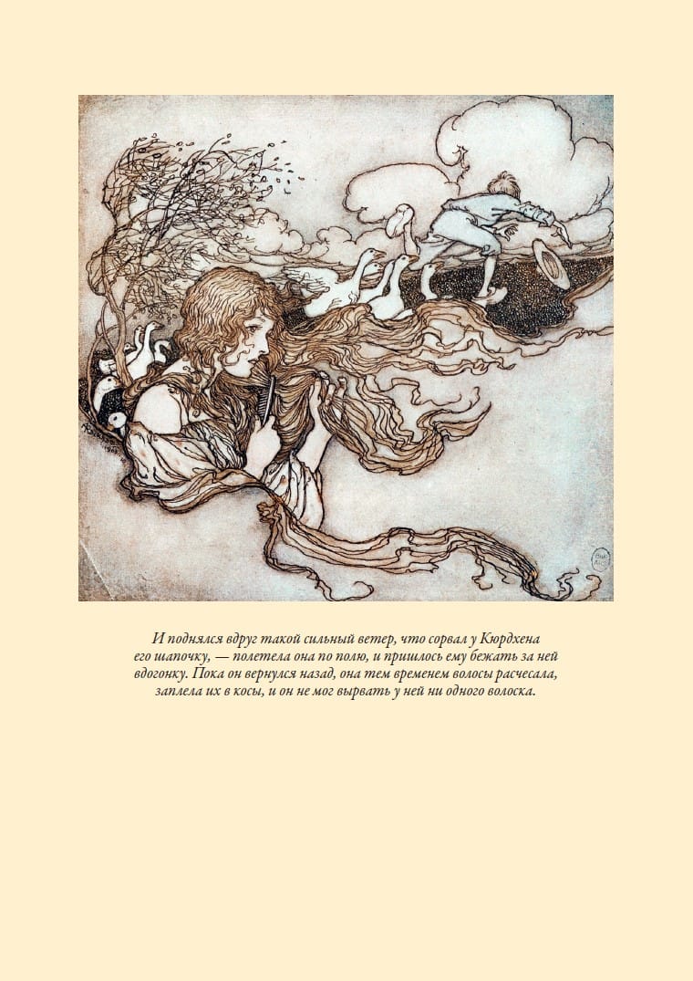 The Brothers Grimm - who hasn't heard of these remarkable ascetics who put so much effort into recording and processing over a hundred German folk tales? It was they who introduced readers to the Bremen Street Musicians, the Brave Tailor, Hansel and Gretel, the Twelve Months, Tom Thumb, and other characters so familiar to us now. Jacob and Wilhelm were yearlings, they were born in the last quarter of the XVIII century in a modest official family. The brothers lost their father early, but managed to enter the law faculty of the University of Magdeburg. However, the study of law, which they took up at the insistence of his mother, did not fascinate neither Jacob nor Wilhelm. They were more interested in history, especially the life of the common people. A few years after graduation, the brothers were able to give themselves entirely to their favorite subject: Jacob was lucky enough to get a place in the royal library. This well-paid position left a lot of free time, and the brothers enthusiastically gave themselves to scientific and literary works. Jacob and Wilhelm began recording German fairy tales at the very beginning of the nineteenth century; a book of their collected texts was published in 1816. In the preface to this edition, the brothers wrote that "a man receives from his homeland guardian angel, which accompanies him in life; it is an inexhaustible treasure of fairy tales, sagas and stories". Now, thanks to the Brothers Grimm, the treasures of German folk tales have become the property of all mankind. In this edition the texts of fairy tales are accompanied by the works of the famous British artist Arthur Rackham, who is deservedly considered the outstanding master of the Golden Age of British book illustration. The future artist was born in the fall of 1867 in a large family. He began an independent life with a modest position of a clerk, but the clerical routine Arthur was not satisfied with: he wanted to do more creative work, and he began to take drawing lessons. It did not take long, and by the beginning of the twentieth century Rackham gained a reputation as a recognized master of book illustrations. In particular, he became the author of magnificent drawings for a collection of legends and legends, collected popularizer of ancient Irish myths James Stevens. By the age of fifty, Rackham had entered a period of creative flourishing, his illustrations often adorned luxury expensive publications. The original drawings were often shown at numerous exhibitions, including the Louvre, and sold at international art auctions.
