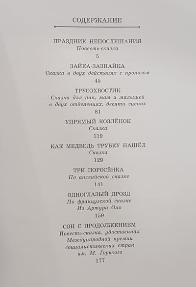 The book "Fairy Tales" includes the most famous works of Sergei Mikhalkov: "The Feast of Disobedience", "Zaznaika the Bunny", "The Coward's Tail", "The Three Little Pigs" and others. Each tale easily and unobtrusively tells children about the most important things in life - the ability to be themselves, overcoming their fears, the importance of friendship and love, relationships with parents, about everything that makes up the world of childhood.