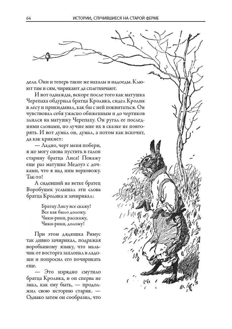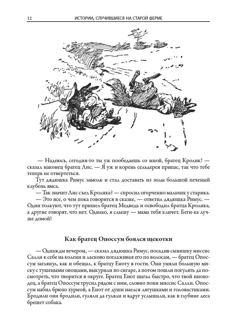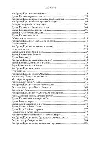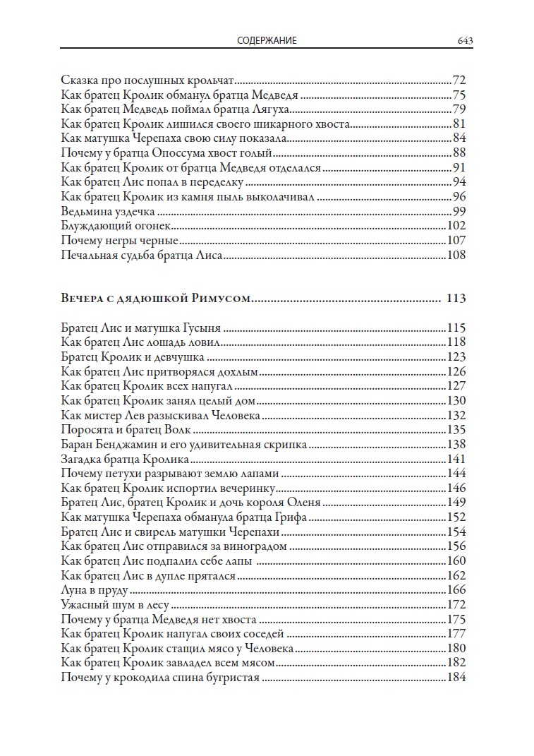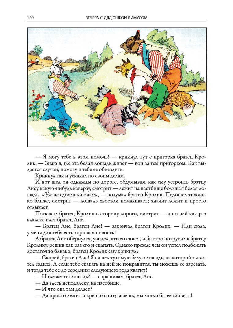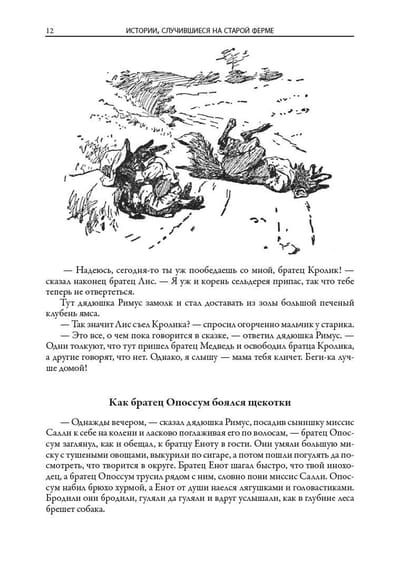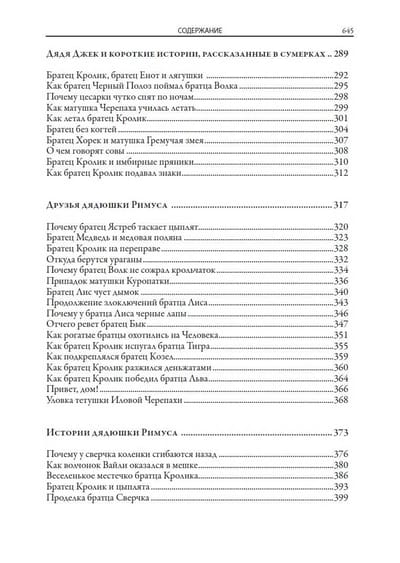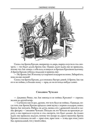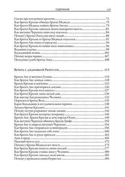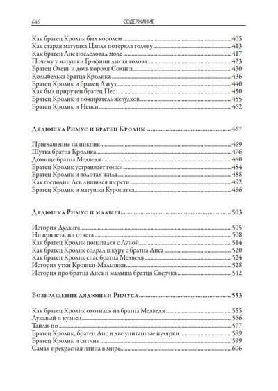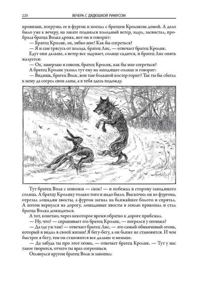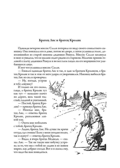 The book includes all seven collections of Negro tales about Uncle Remus, Brother Rabbit, Brother Fox and other characters invented by the American writer and folklorist of the XIX century Joel Chandler Harris. All one hundred and sixty-eight fairy tales are translated by S. Y. Afonkin. Most of them are published in Russian for the first time. The edition is decorated with many drawings by three artists - A. B. Frost, J. M. Conde and F. Ver Beck.