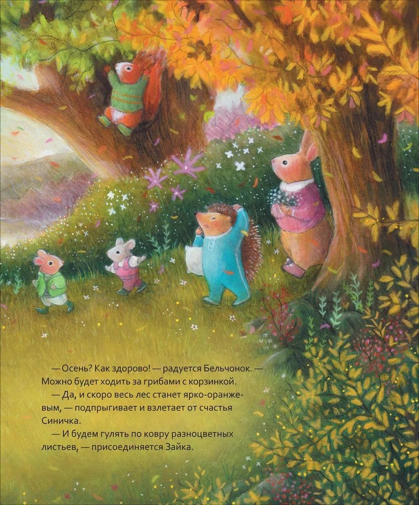 There is something special and wonderful about every season. For Bunny, Squirrel, Tits and Hedgehog, the coming of a new season is an exciting adventure. In winter they rejoice at the first snow, in spring they wait for the daffodils to bloom, in summer they have a picnic, and in fall they stock up on food and take Hedgehog to hibernation. Together the friends discover the beauty of nature and the changing seasons, enjoying life in the forest, filled with small daily miracles.
