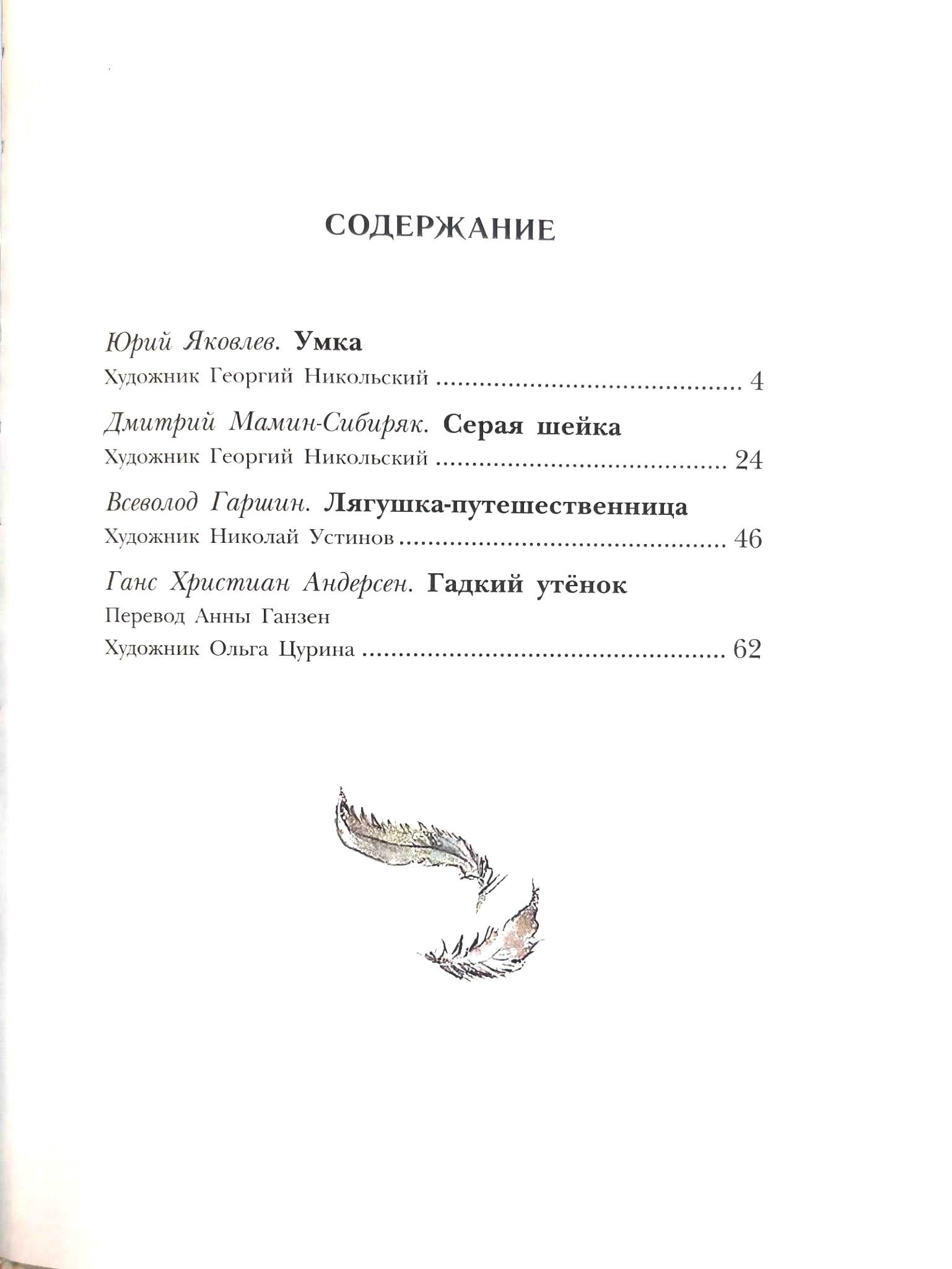 These stories could very well have actually happened. Little Umka could have slipped away from his mother bear and gone to live with people, finding a friend among them—a little boy; Little Gray Neck could have fallen into the clutches of a fox and, with a broken wing, been left to spend the winter alone on the river. The fox could have hunted her again, and the hunter could have found her and brought her back to his granddaughters; a boastful frog could have so delighted migratory ducks that not only did they not eat her, but they even took her along on their journey south... But in nature, bears, ducks, foxes, and frogs don't talk. And hares can't laugh. And trees don't speak, and even if they do, humans can't hear or understand them. That's why these stories are called fairy tales. They form this collection.