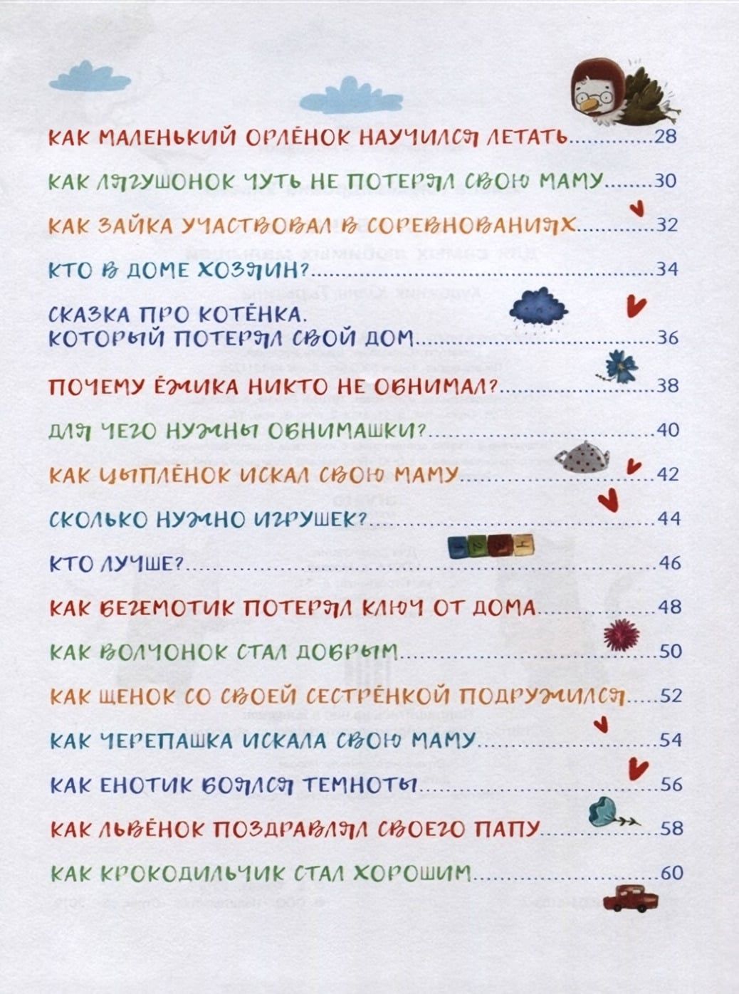 What to do if the baby does not obey, is stubborn, capricious? Scold, reprimand, punish? Or maybe a hug? Hugging tales from this book teach the child to love their loved ones, treat them with warmth and trust. After reading and discussing each story with your child, don't forget to give him a big hug!