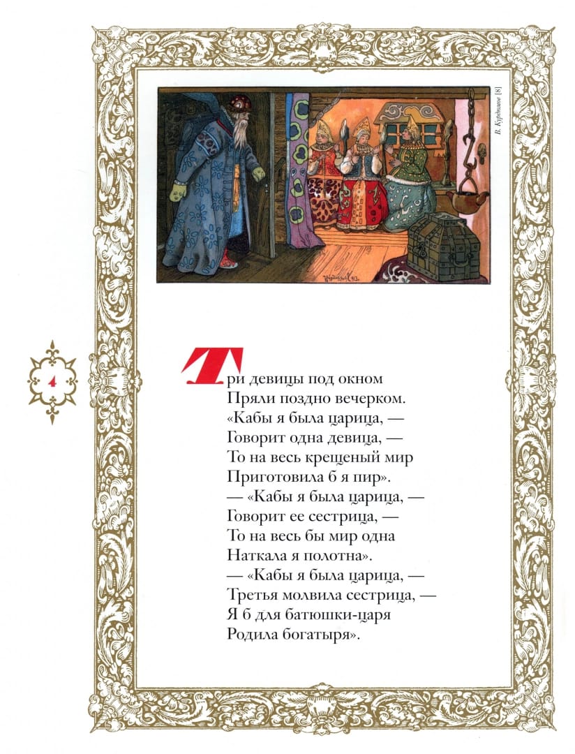 Collected together, illustrations by Boris Zvorykin, Valery Kurdyumov, Sergey Malyutin, Nikolay Bogatov, Nikolay Bartram and, of course, Ivan Bilibin, not only within a separate book, but also within one work, organically complement each other, uniting into a common ensemble, showing different facets of the same unique phenomenon - Russian folk culture. It is not surprising that it was the fairy tales of Alexander Sergeevich Pushkin and his poem "Ruslan and Lyudmila" that became the ideal literary basis for the implementation of this artistic publishing project.