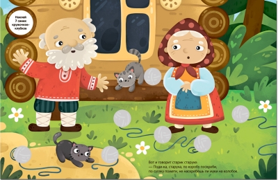 The book "Kolobok" from the "Tales with Circles" series will transport your child to the magical world of the Russian folk tale of the same name. On colorful pages with bright and playful illustrations, your little one will encounter favorite fairytale characters and engage in engaging activities—they'll have to match colorful circle stickers and complete pictures with them. These activities help develop fine motor skills, eye judgment, perseverance, accuracy, and attention.