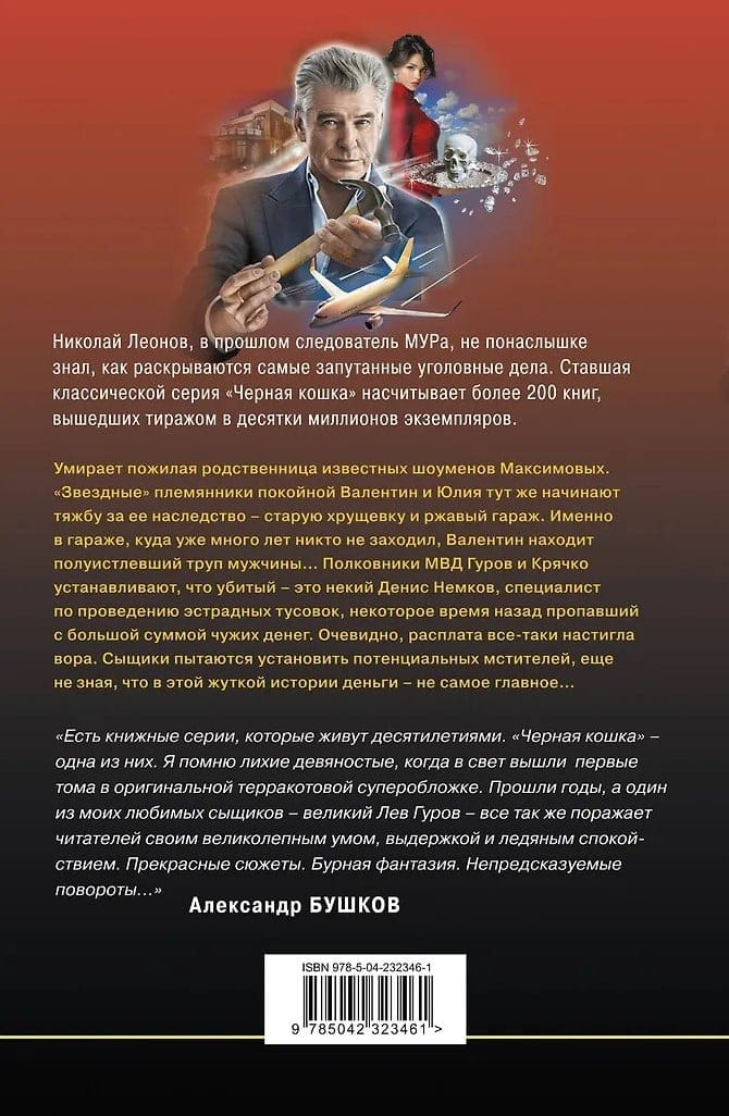 An elderly relative of the famous showmen, the Maximovs, dies. The deceased's celebrity nephews, Valentin and Yulia, immediately begin a lawsuit over her inheritance—an old Khrushchev-era apartment and a rusty garage. It is in the garage, untouched for years, that Valentin discovers the half-decayed body of a man... Interior Ministry Colonels Gurov and Kryachko determine that the murdered man is a certain Denis Nemkov, a professional entertainer who disappeared some time ago with a large sum of other people's money. Apparently, retribution has finally caught up with the thief. Detectives try to identify potential avengers, unaware that in this grisly story, money is not the only thing that matters...