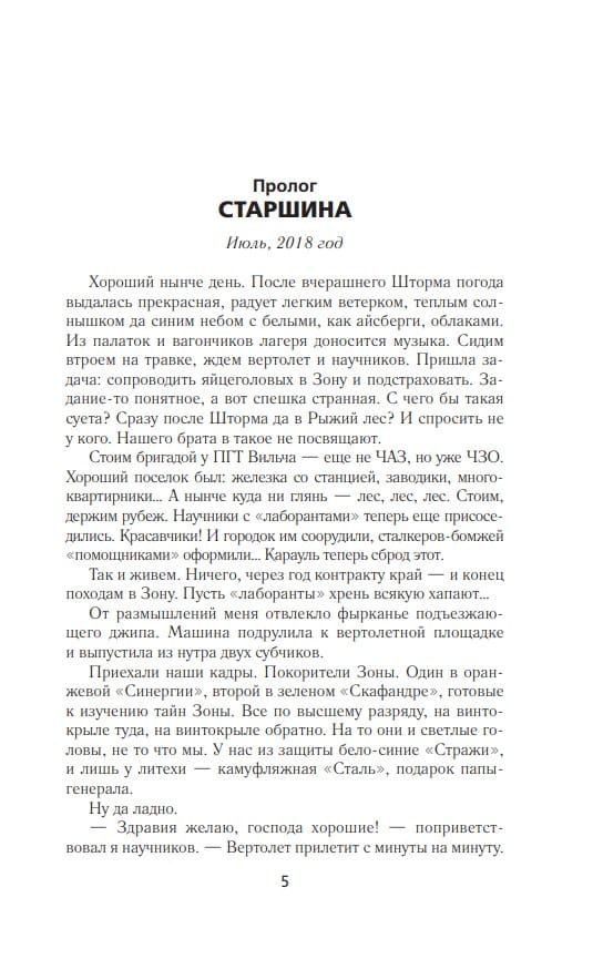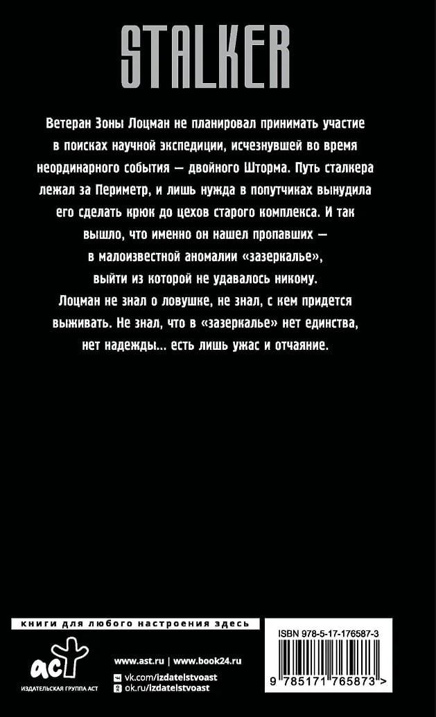 Zone veteran Pilot hadn't planned to take part in the search for the scientific expedition that disappeared during an extraordinary event—a double Storm. The stalker's path lay beyond the Perimeter, and only the need for companions forced him to make a detour to the workshops of the old complex. And so it turned out that he was the one who found the missing people—in a little-known anomaly called "looking glass," from which no one had ever managed to escape.