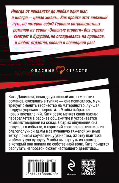 Katya Danilova, once a successful author of women's novels, found herself at a dead end - she wrote out, her husband demands to change her creativity to motherhood, her best friend reproaches her for grayness... To gain new impressions, Katya abruptly changes her life: she moves into a working hostel and gets a job as a picker in a warehouse. She gets a lot of thrills, in a short time turning from a prosperous lady into an aunt tormented by a hard life, an accomplice of a murderer, a victim of blackmail and a deceived spouse. To get out of the nightmare, in which she fell of her own free will, Katya will have to unravel a complicated plot of a real detective....