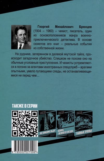 At a mine lost in the distant Yakut taiga, a mysterious murder occurs. This is not like ordinary criminal offences. And the Chekists rush in pursuit of agents of foreign special services - enemies experienced, skillfully confusing tracks, stopping at nothing. Georgy Mikhailovich Bryantsev (1904-1960) - Chekist, intelligence officer, saboteur, honorary employee of state security and the most talented writer, all his life devoted to the state security agencies. The plots of his books are based on real events from his own life.