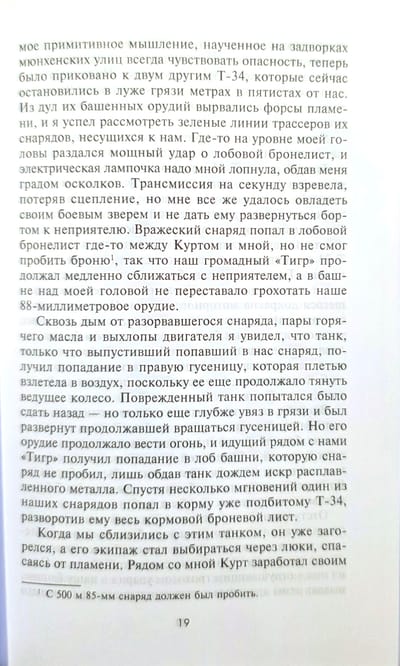 A driver of a German Tiger tank describes the combat path he and his crew took along the military roads of the Eastern Front during World War II. Possessing undoubted literary abilities, the author conveyed with a high degree of accuracy the nature of this war with its bloodshed, chaos, scale of destruction, harsh frontline life and incredible bravery demonstrated by soldiers and officers of both warring sides. And although he is confident in the justice of the war waged by Germany, under fire from Soviet guns he mentally exclaims: “It seemed that all of Russia had brought down its anger and all its fury on us for what we had done on this land.”