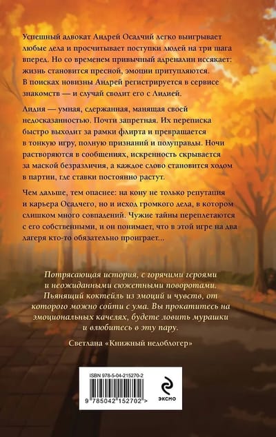 My ex-husband won't leave me alone. He's obsessed with revenge and a desire to destroy everything that brings me joy. To this end, he hired the most cunning and dodgy lawyer in Moscow.
