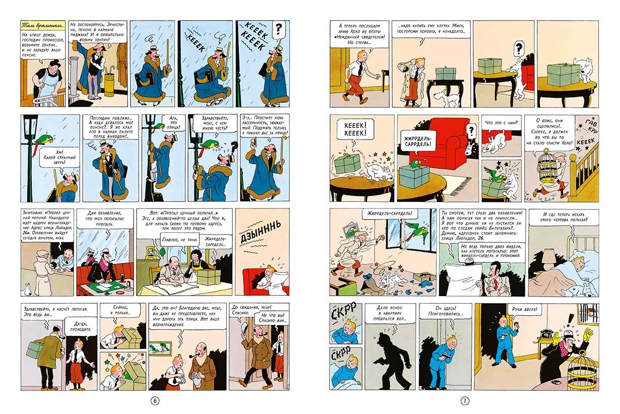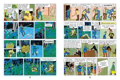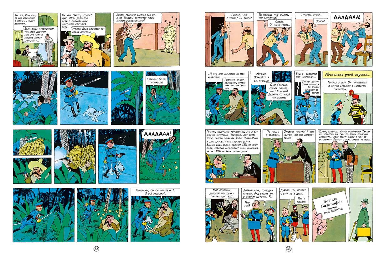 A wooden idol of the Arumbaya tribe is stolen from the Ethnographic Museum. However, the next day the statue is found in its rightful place. Tintin has no doubt - a fake has been returned to the museum. The original ear was missing a small fragment, but the returned god has a whole ear. In pursuit of the stolen statue, Tintin boards a steamship that sails to South America. A couple of gangsters who are after the statue trick him into coming ashore, and Tintin finds himself caught up in a whirlwind of revolutionary events. Power here is constantly changing hands, oil companies are pushing the Republic of San Theodoros to war with neighboring Nuevo Rico. Tintin barely gets his feet out of there and ends up on the Baduraial River, home to the Arumbaya, South America's most ferocious tribe. Tintin realizes that the solution must be sought there... "The Adventures of Tintin" - world-famous series of comic books by Belgian artist Georges Remy, who worked under the pseudonym Hergé. Investigating mysterious incidents, the young reporter Tintin finds himself in the "hot spots" of the planet, where important events occur. Hergé's stories are full of secrets, mysteries and unexpected turns. At every step his hero is under danger. But thanks to ingenuity, courage and resourcefulness Tintin emerges victorious from any trouble. And no matter what happens his faithful friend - snow-white foxterrier Milu - is always by his side.