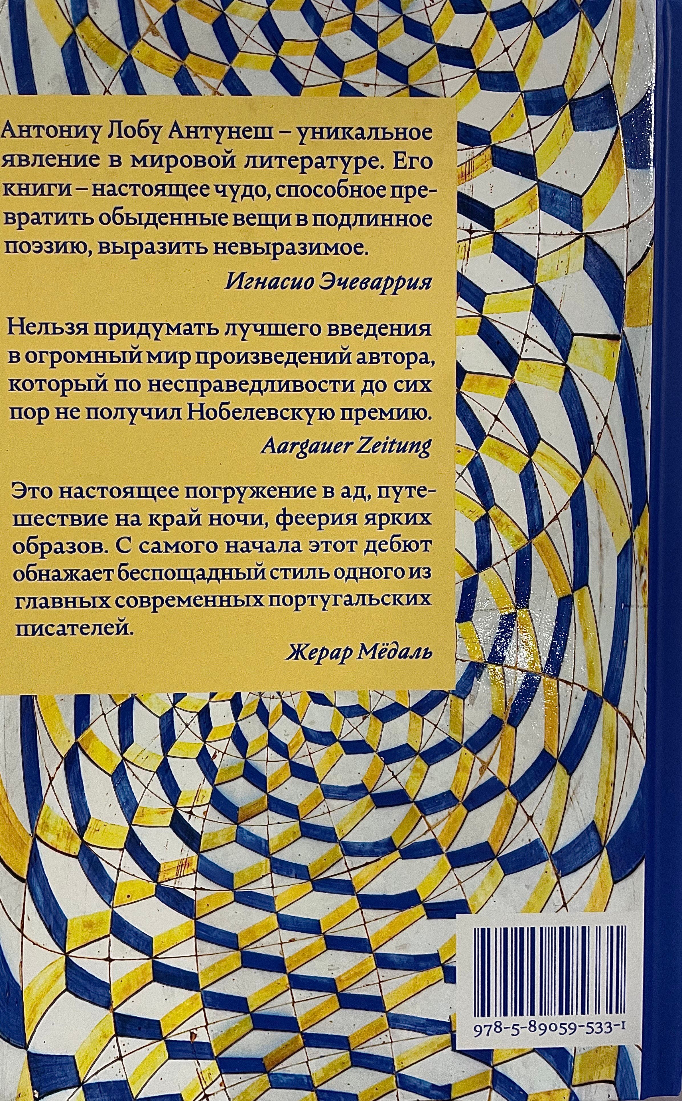 The protagonist of the debut (the first of thirty) novel by António Lobo Antunes is a Lisbon psychiatrist who realizes that his true calling is writing. Over the course of one day, he recalls his entire life: childhood, youth, the war in Angola, life and breakup with the woman he loved. This is a largely autobiographical, vivid, frank story in which the hero tries to find his true self against the backdrop of an existential crisis while wandering around Lisbon at night, a portrait of which remains forever in his memory.