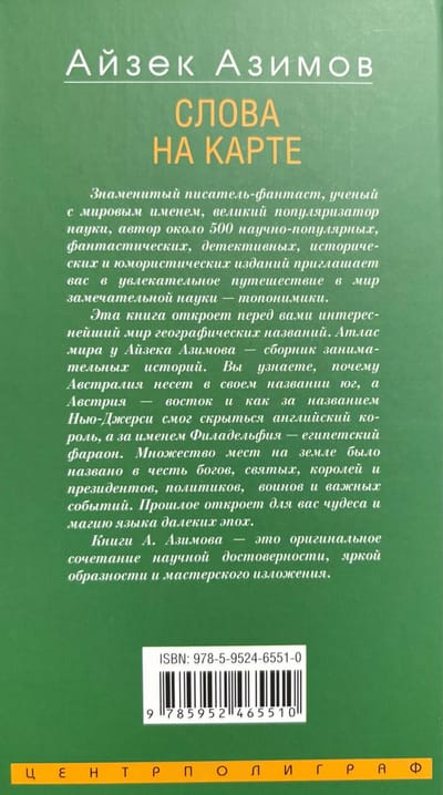 This book is almost a toponymic atlas of the world, which Isaac Asimov has transformed into a collection of engaging stories. You'll learn why Australia carries the word "south," and Austria the word "east," and how the name New Jersey could have been an English king, while Philadelphia could have been an Egyptian pharaoh. Many places on earth were named after gods, saints, kings and presidents, politicians, warriors, and important events. The past will reveal the wonders and magic of the languages of distant eras.