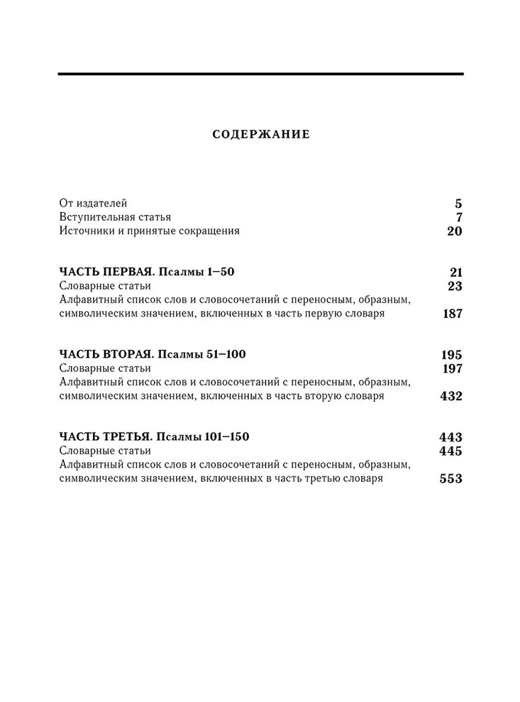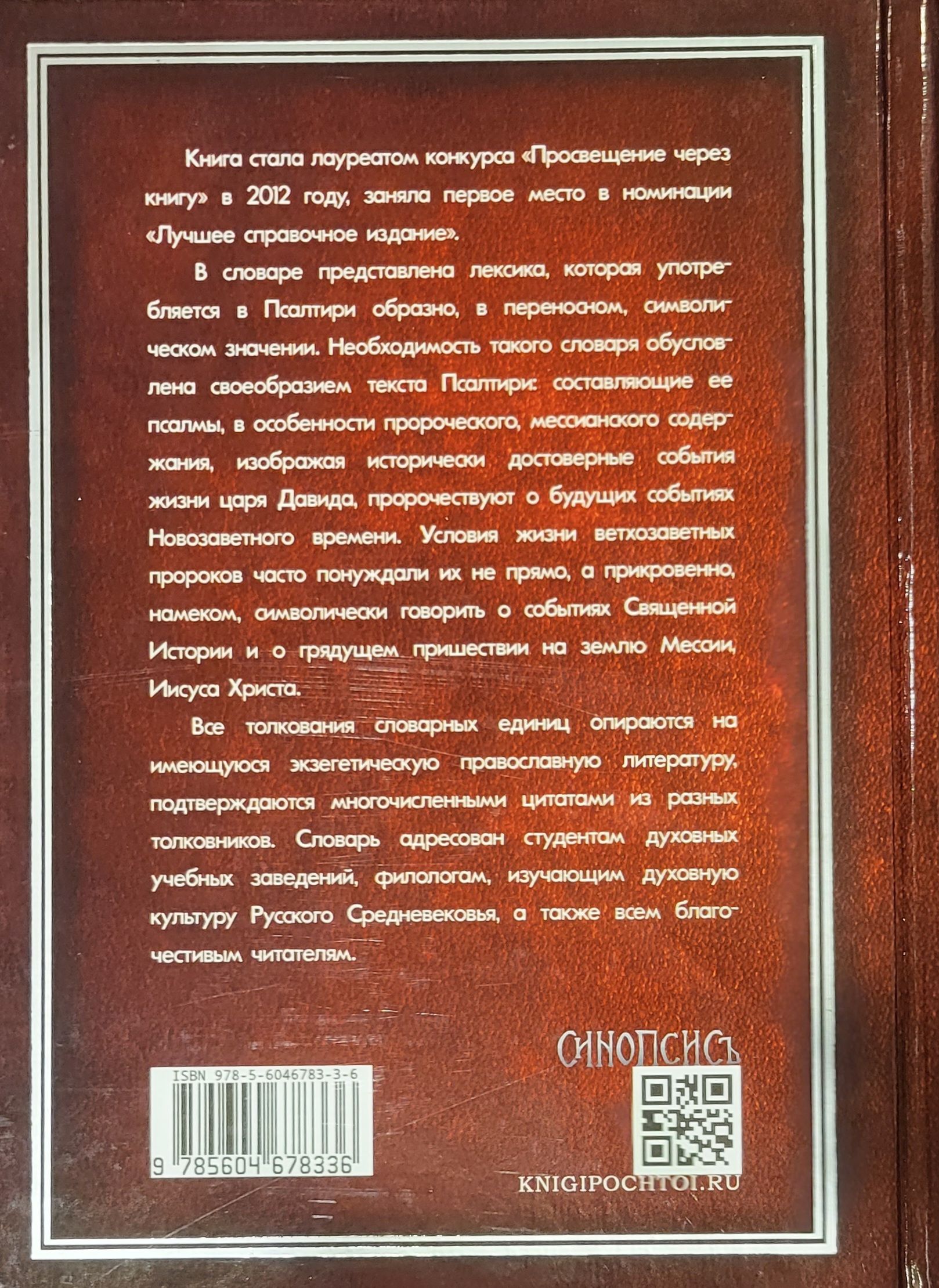 The dictionary presents the vocabulary used in the Psalter figuratively, in a figurative, symbolic meaning. The need for the book is due to the fact that the Psalms, depicting certain events in the life of King David, prophesy about future events of the New Testament.
