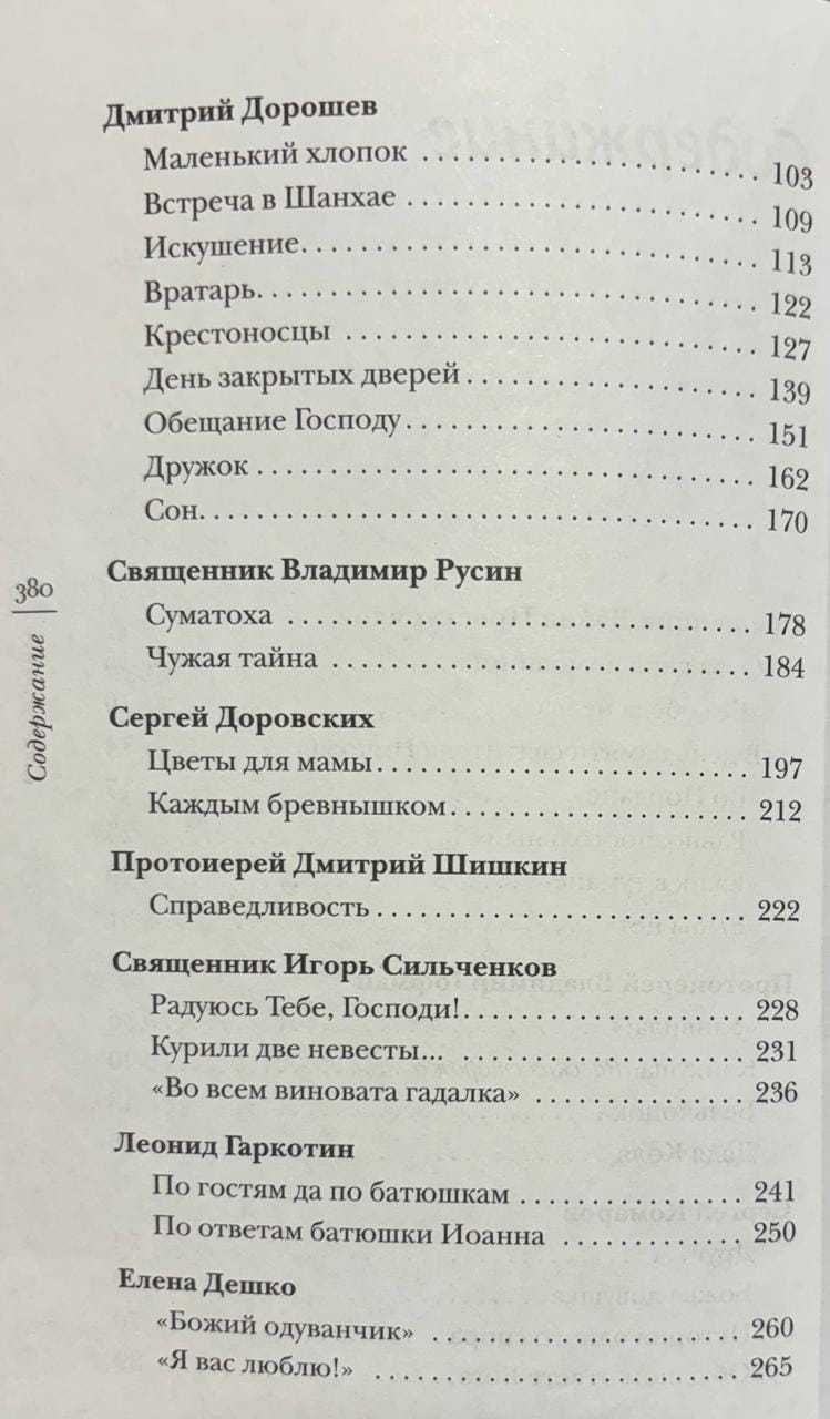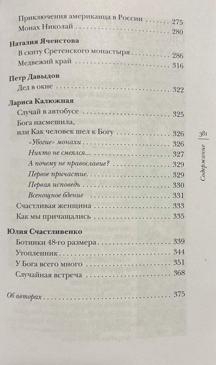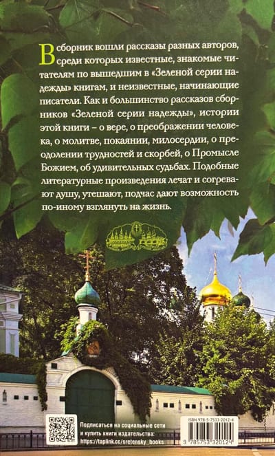 This collection includes stories by various authors, including well-known authors familiar to readers from books published in the "Green Series of Hope," as well as unknown, emerging writers. Like most stories in the "Green Series of Hope," the stories in this book are about faith, human transformation, prayer, repentance, mercy, overcoming difficulties and sorrows, God's Providence, and remarkable destinies. Such literary works heal and warm the soul, comfort, and sometimes offer a new perspective on life. Two stories are dedicated to the deceased monks of Sretensky Monastery—Monk Nikolai (Muromtsev) and Hieromonk Nil (Grigoriev), about whom Metropolitan Tikhon (Shevkunov) wrote in his book "Unholy Saints."