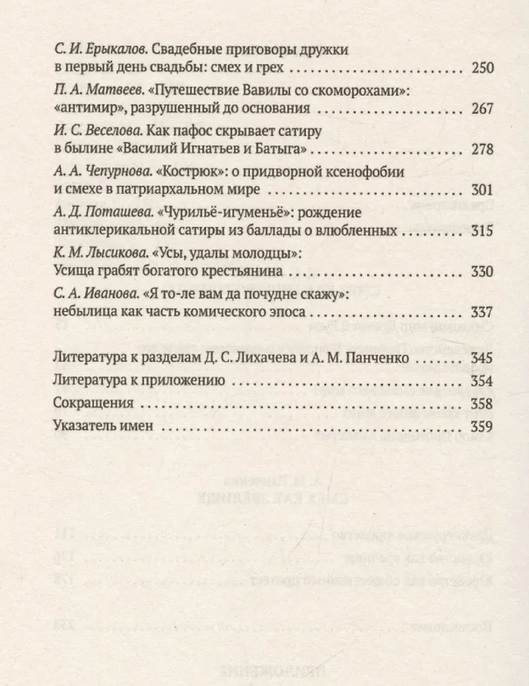 This edition is supplemented by an appendix in which participants in the folklore seminar of the Philological Faculty of St. Petersburg State University, "Fundamentals of Traditional Text Analysis," led by I. S. Veselova, comment on comic folklore with its humor, not always understandable to the modern reader, and sometimes quite harsh satire on the social reality of the late 19th and early 20th centuries.