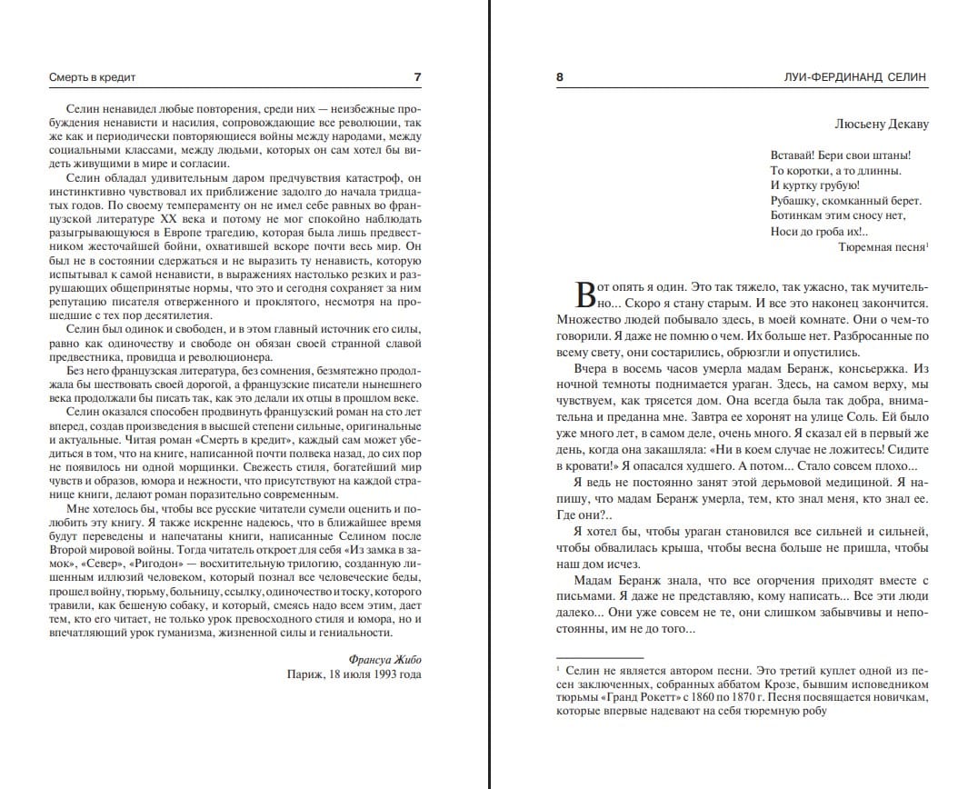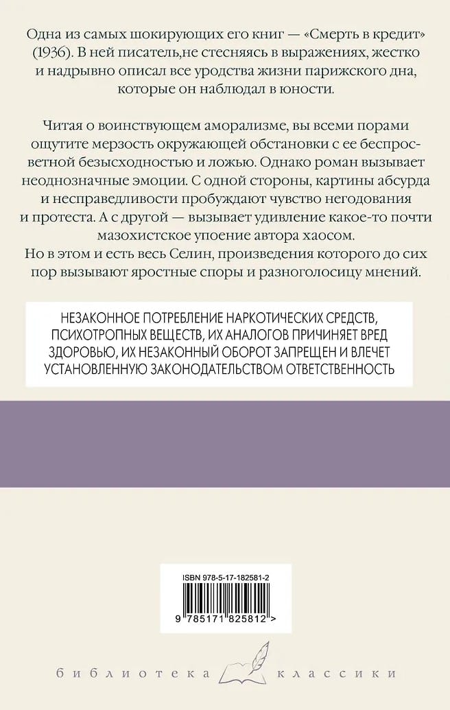 Louis-Ferdinand Céline is a classic of 20th-century literature, a writer with a tragic fate, renowned as a misanthrope, anarchist, cynic, and extreme individualist. Accused of collaborating with the German occupation authorities during World War II, Céline was forced to flee to Germany and then to Denmark, where he spent several post-war years: first in prison, then in exile. One of his most shocking books is Death on Credit (1936). In it, the writer, without mincing words, harshly and heartbreakingly described all the ugliness of life on the Parisian underworld that he observed in his youth. Reading about the militant amorality, you will feel the vileness of the surrounding environment with its hopeless despair and lies. However, the novel evokes mixed emotions. On the one hand, images of absurdity and injustice evoke feelings of indignation and protest. On the other, the author's almost masochistic delight in chaos is astonishing. But this is precisely Céline, whose works continue to provoke fierce debate and a divergence of opinions.