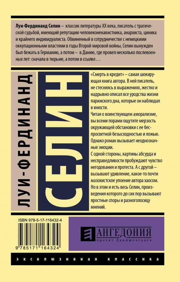 Louis-Ferdinand Céline is a classic of twentieth-century literature, a writer with a tragic fate and a reputation as a misanthropist, anarchist, cynic and extreme individualist. Accused of collaboration with the German occupation authorities during World War II, Selin was forced to flee to Germany, and then - to Denmark, where he spends several postwar years: first in prison, and then in exile ... One of the most shocking of his books - "Death on Credit" (1936). In it, the writer, not shy in expressions, harshly and tearfully described all the ugliness of life of the Parisian bottom, which he observed in his youth. Reading about militant amoralism, you will feel with all your pores the abomination of the environment with its hopelessness and lies. However, the novel evokes ambiguous emotions. On the one hand, the pictures of absurdity and injustice awaken feelings of indignation and protest. On the other hand, the author's almost masochistic enjoyment of chaos is surprising. But that is the whole of Céline, whose works still provoke fierce debates and a diversity of opinions.