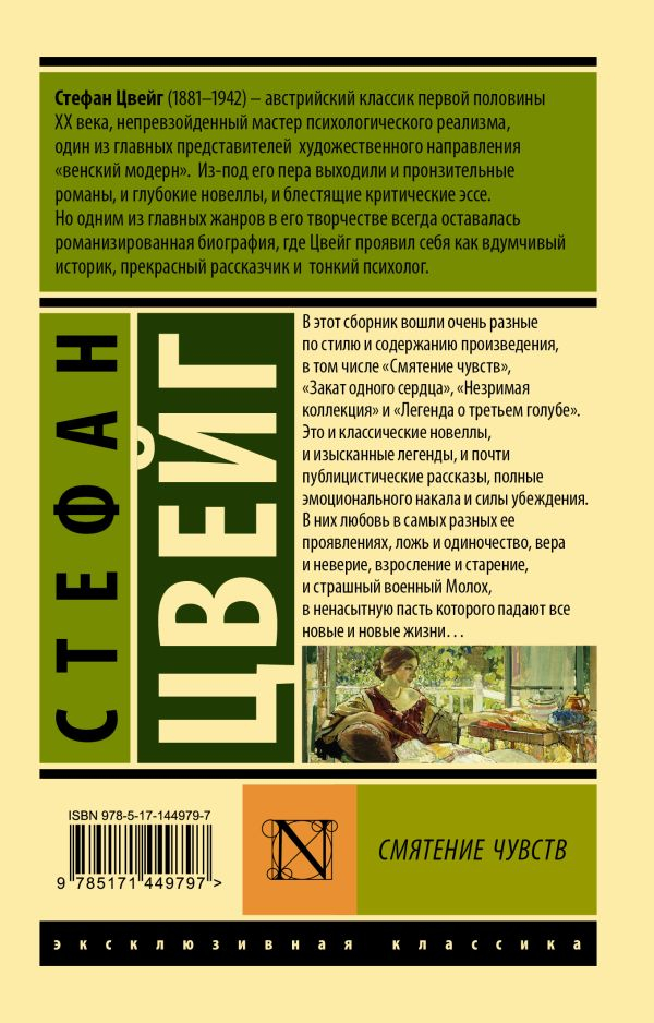 This collection includes works very different in style and content, including "Confusion of Feelings", "Sunset of One Heart", "The Invisible Collection" and "The Legend of the Third Dove". These are both classic novellas, and exquisite legends, and almost publicistic stories, full of emotional intensity and the power of persuasion. In them love in its various manifestations, lies and loneliness, faith and disbelief, growing up and aging, and the terrible war Moloch, in the insatiable jaws of which fall more and more new lives ...