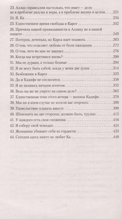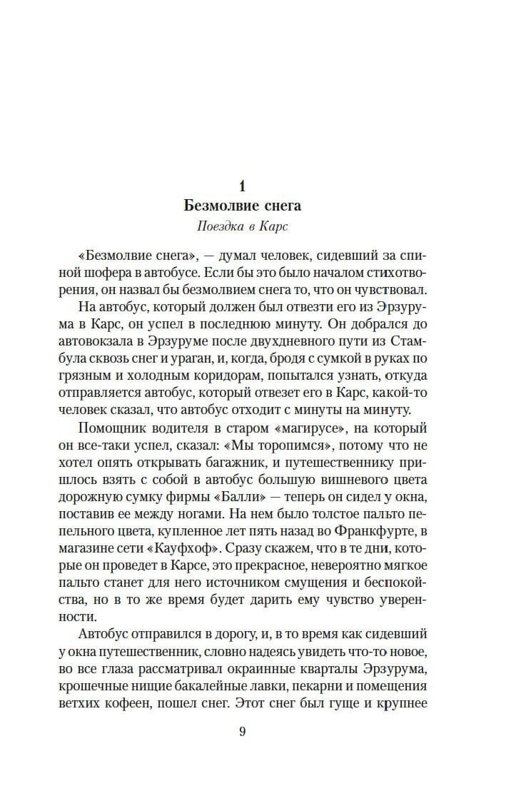 Orhan Pamuk is a famous Turkish writer, winner of numerous national and international awards, including the Nobel Prize in Literature for "finding the soul of his melancholic city". Indeed, the action of almost all of the writer's novels takes place in Istanbul, a city of mystery and beauty, which has experienced the highest prosperity and the sad twilight of decline. The action of the novel "Snow", however, develops in a small provincial town, where a young poet arrives in search of clues to the causes of death of several young girls who committed suicide. Here, as if on the edge of the earth, dwells a completely different people, practicing strict religious rules. Cut off from the rest of the world by vast white spaces, covered with snow, the town does not even think of slumbering, but on the contrary - closely follows every step of the uninvited guest....