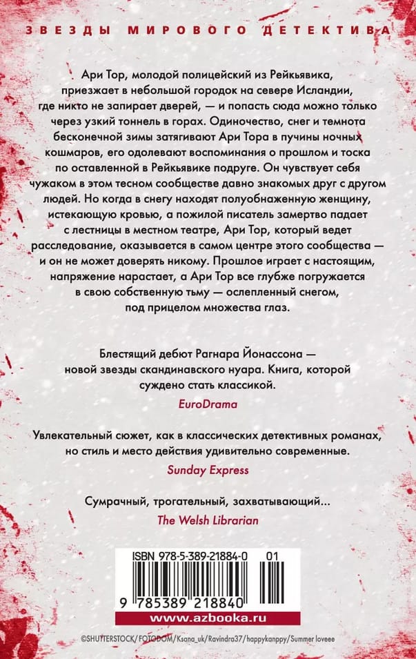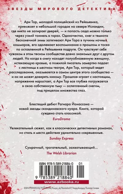 Ari Thor, a young police officer from Reykjavik, arrives in a small town in the north of Iceland where no one locks their doors - and the only way in is through a narrow tunnel in the mountains. The loneliness, snow and darkness of the endless winter pulls Ari Thor into the depths of nightmares, he is overcome by memories of the past and longing for the girlfriend left behind in Reykjavik. He feels like an outsider in this tight-knit community of longtime acquaintances. But when a half-naked woman is found bleeding in the snow and an elderly writer falls dead down the stairs at the local theater, Ari Thor, who is investigating, finds himself at the heart of this community - and he can trust no one. The past plays with the present, tensions mount, and Ari Tor sinks deeper and deeper into his own darkness - blinded by snow, in the crosshairs of many eyes.