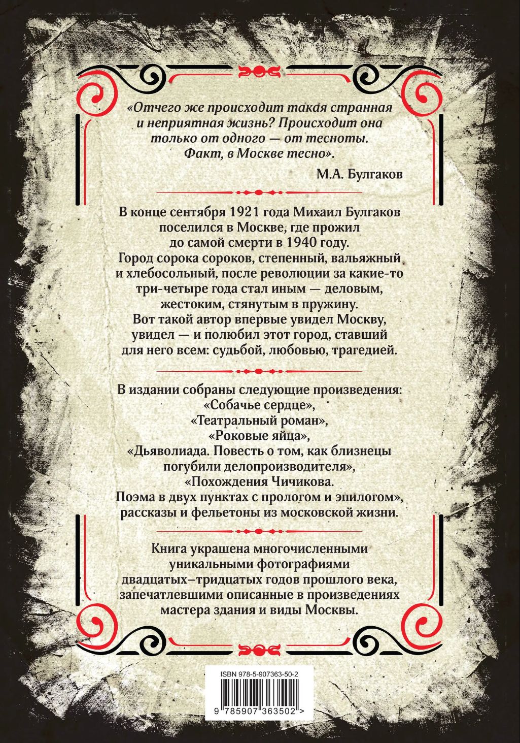 At the end of September 1921, Mikhail Bulgakov settled in Moscow, where he lived until his death in 1940. The city of forty forties, sedate, stately and hospitable, after the revolution in some three or four years became different - businesslike, cruel, pulled together like a spring. This is the author who first saw Moscow, saw - and fell in love with this city, which became everything for him: fate, love, tragedy. Genre and everyday details of Moscow life are reproduced in the works of Mikhail Bulgakov with absolute accuracy, reliability. Sometimes it is unclear where reality is and where fiction. The book is decorated with numerous unique photographs from the twenties and thirties of the last century, capturing the buildings and views of Moscow described in the works of the master.