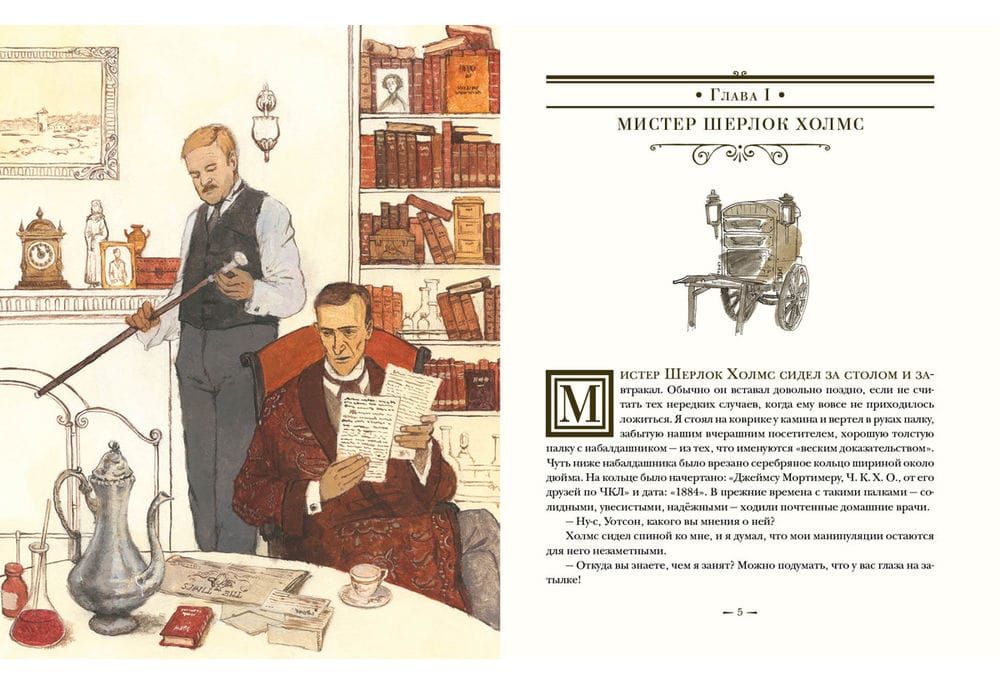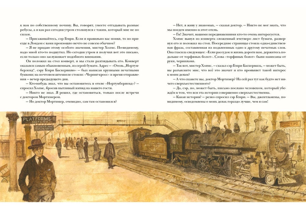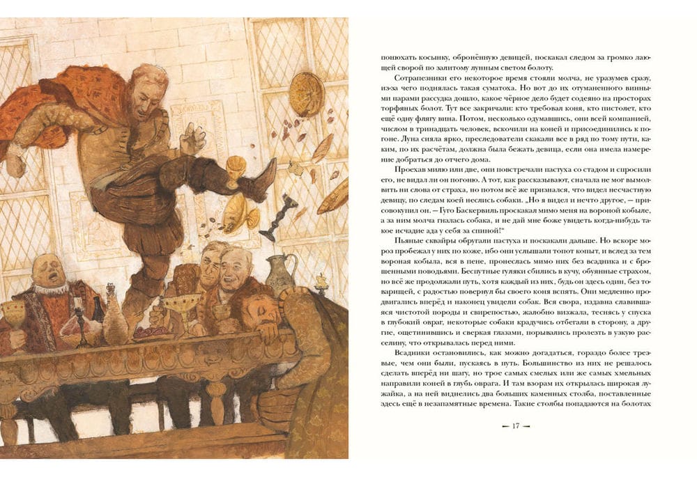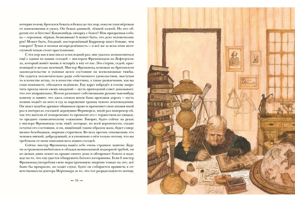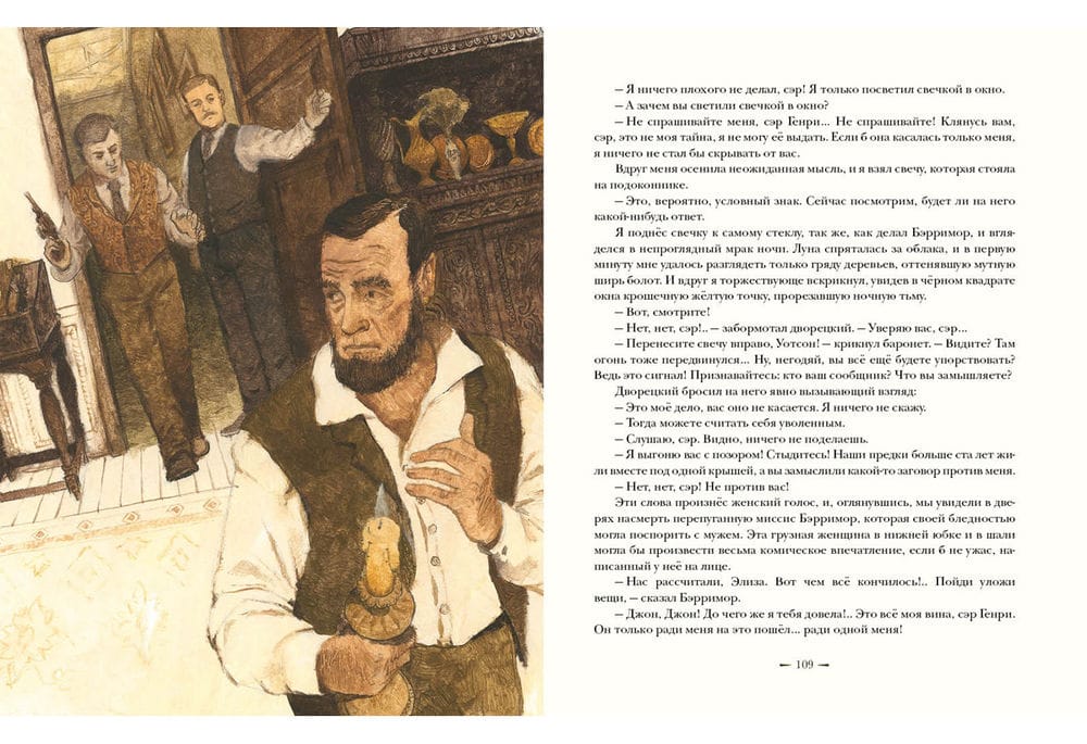 The skill and intellect of the renowned detective Sherlock Holmes once again confront the cunning of a cold-blooded criminal. And, as always, Holmes has his faithful and indispensable assistant, Dr. Watson, at his side. The mysterious and sudden death of Sir Charles Baskerville, the owner of a large fortune, has stirred the county of Devonshire, as everyone has heard legends of a terrible curse that has brought much misfortune to the oldest Baskerville family. According to family legend, members of this family have long been haunted by the image of a terrible dog. Traces of a huge dog were also found near Sir Charles's body. Some time later, the Baskerville heir, young Henry, returns to England, and strange and frightening events immediately begin to unfold around him. Is he, too, destined to die tragically on the Devonshire moors—or will the power of logic and intelligence ultimately overcome the curse? The book is illustrated by artist Oleg Pakhomov.