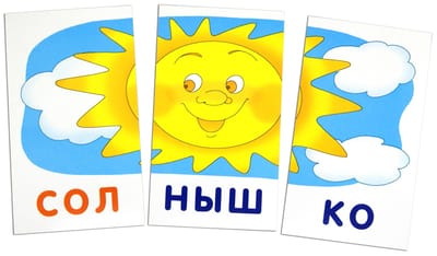 A set of picture cards from the "Entertaining Cards" series is part of a literacy training kit for children. The total number of cards in the set ensures the development of a complete initial reading technique in children. By playing with the cards and forming words, children learn to read and memorize the graphic representation of words. This set includes 48 cards, which can be used to create 16 pictures. If the picture is assembled correctly, a word consisting of three syllables is formed. The game uses both the front and back of the card, enhancing the effectiveness of reading instruction. This resource is designed for preschool and primary school-aged children. It is used in the fourth stage of learning – reading multisyllabic words. Detailed instructions for parents are included.