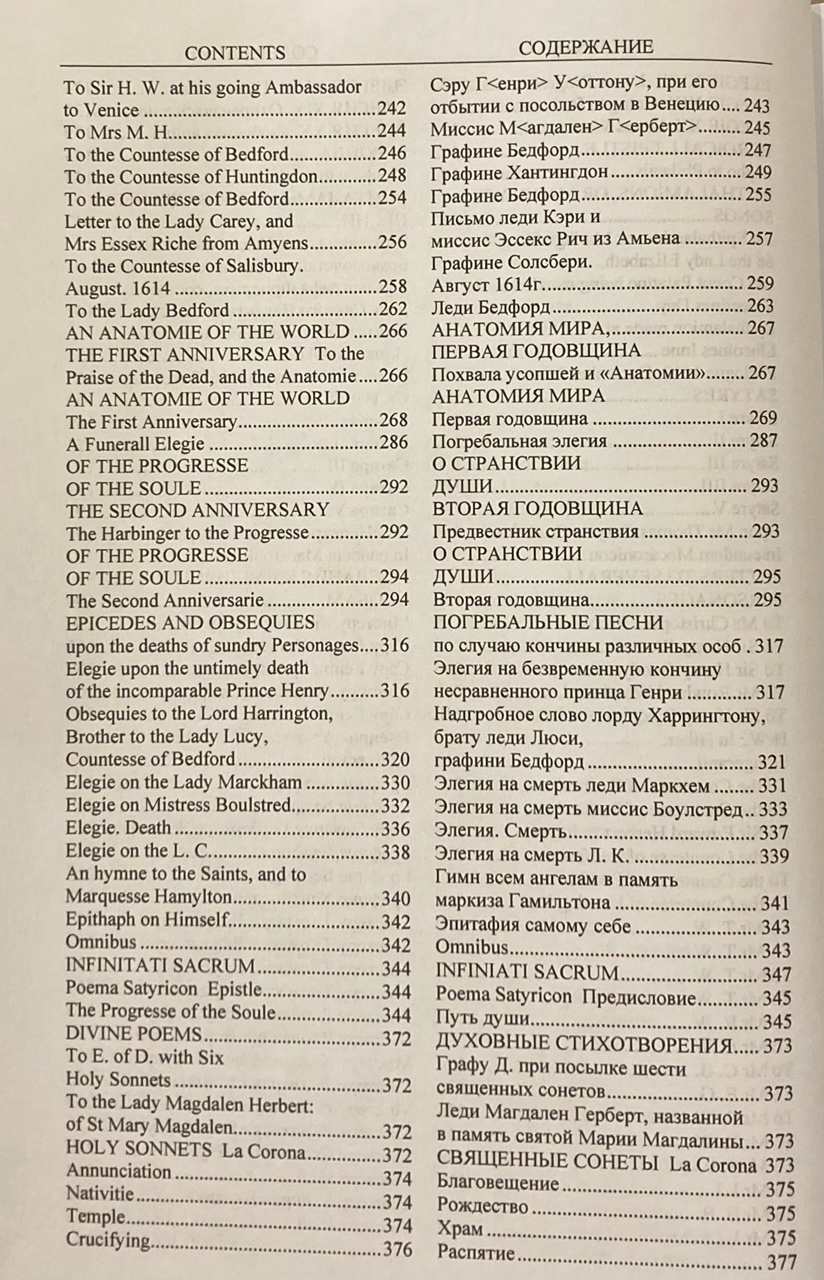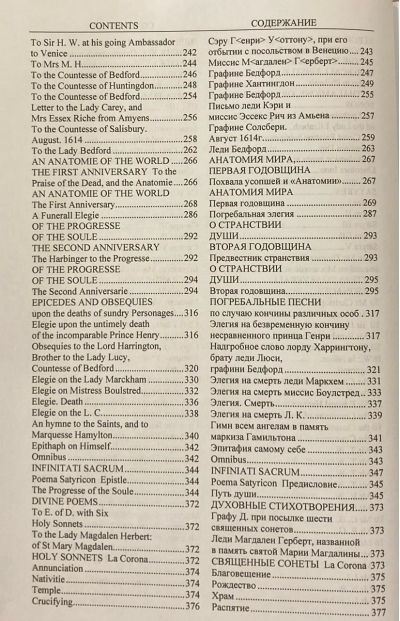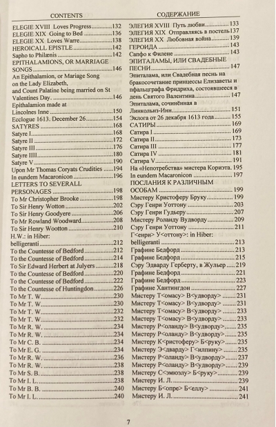 John Donne (1572 - 1631) - a younger contemporary of Shakespeare - an English preacher and metaphysician poet, the largest representative of English Baroque literature, the author of love poems, elegies, sonnets and epigrams. He is considered the most brilliant lyricist of English poetry. Donne's poems have been translated into Russian many times, but they are so peculiar, deep and unusual that they deserve new translations. The bilingual collection of translations by Sergey Sapozhnikov covers the entire body of Donn’s poetry and is provided with extensive commentary.